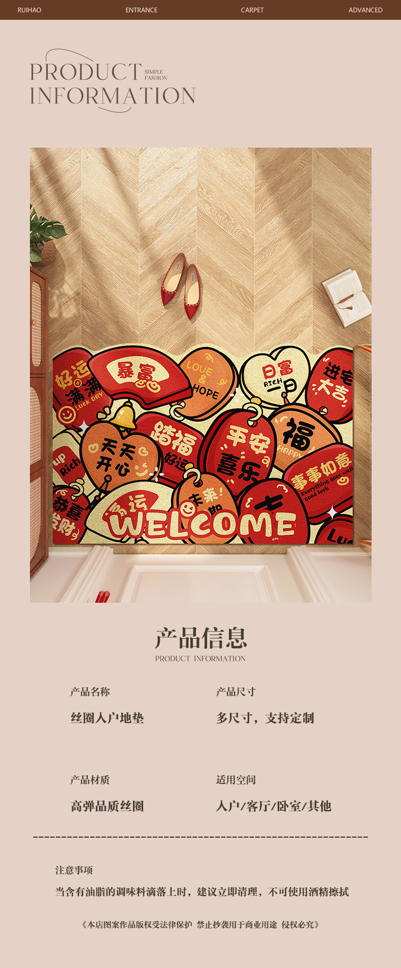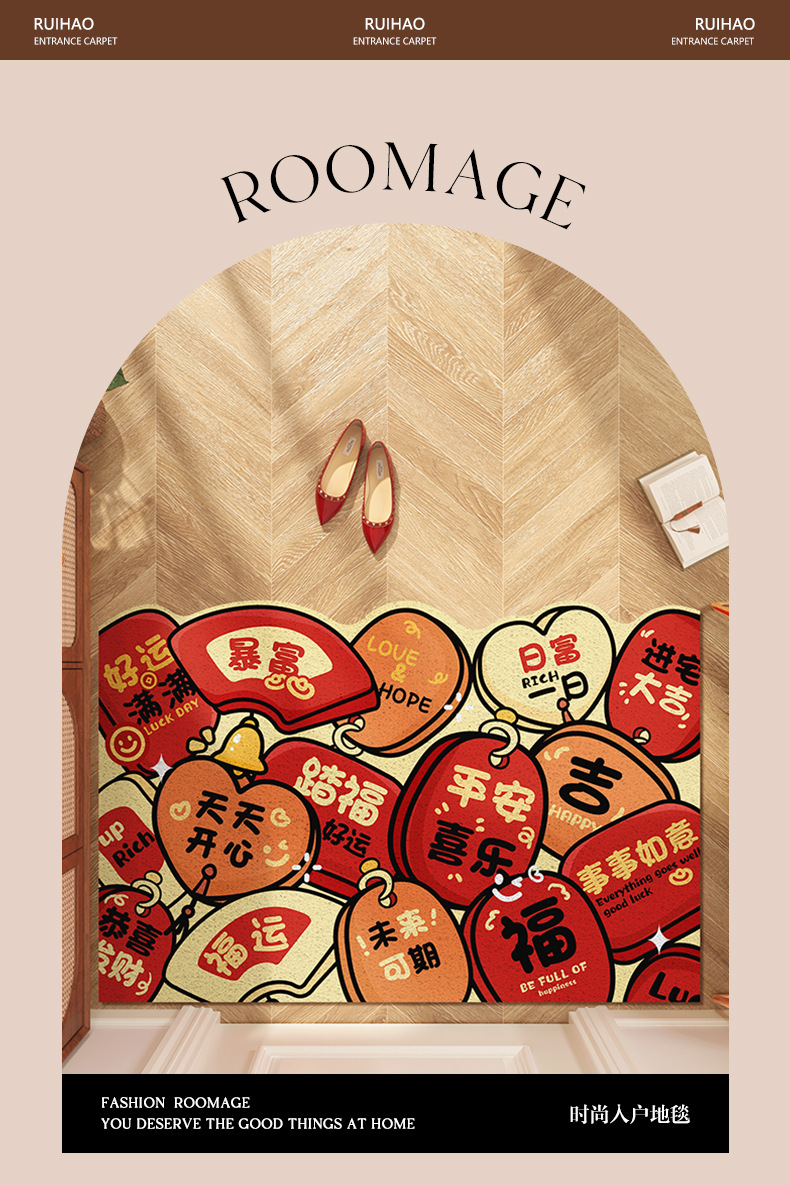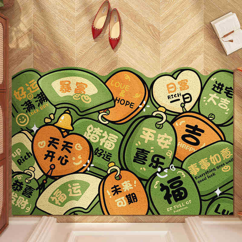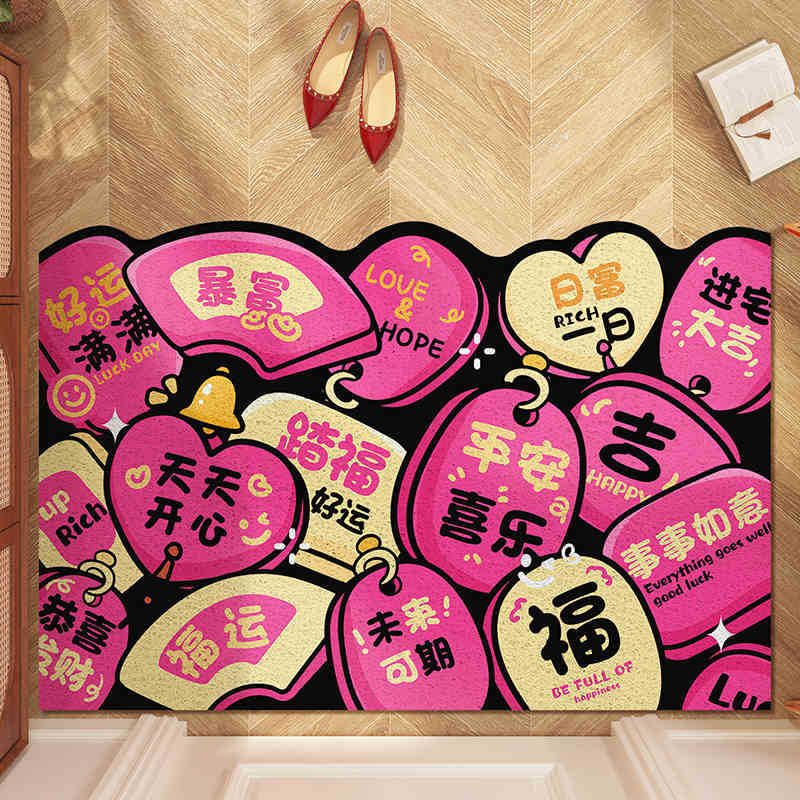 입구 문 매트 빨간 축제 입구 문 매트 홈 도어 매트 매트 비 슬립 실크 링 먼지 방지 착용 도어 절단 가능한 발 매트스토어 가기