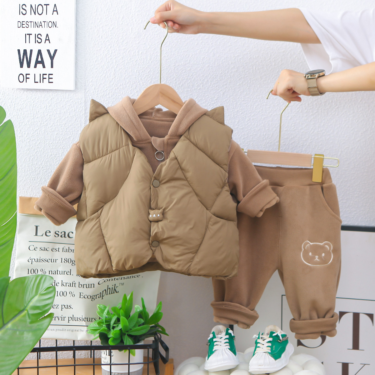 소년 겨울 옷 기모 두꺼운 3 조각 세트 2024 새로운 어린이 가을과 겨울 아기 조끼 땀 세트스토어 가기