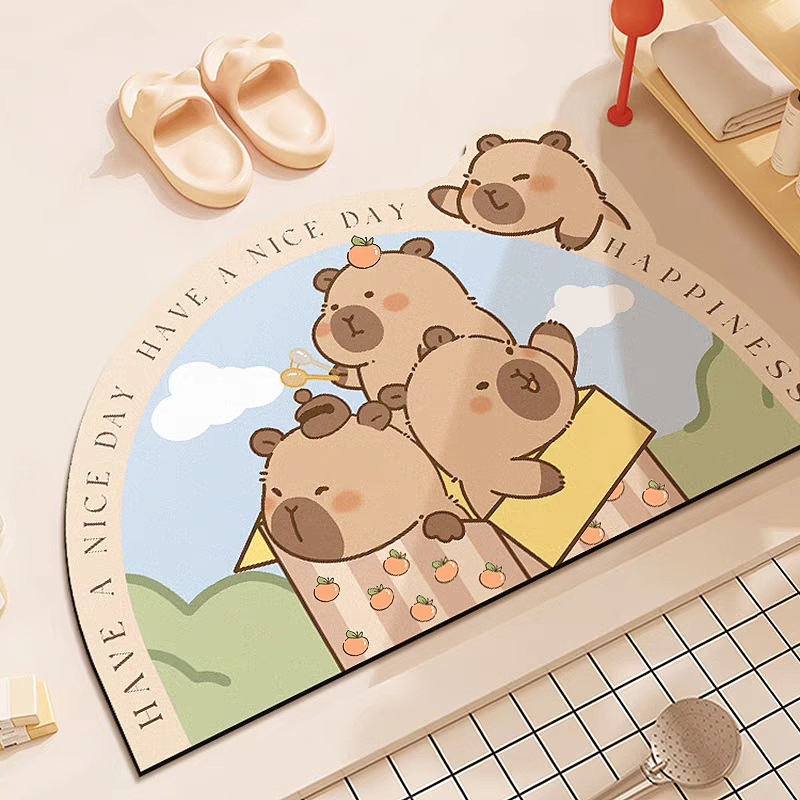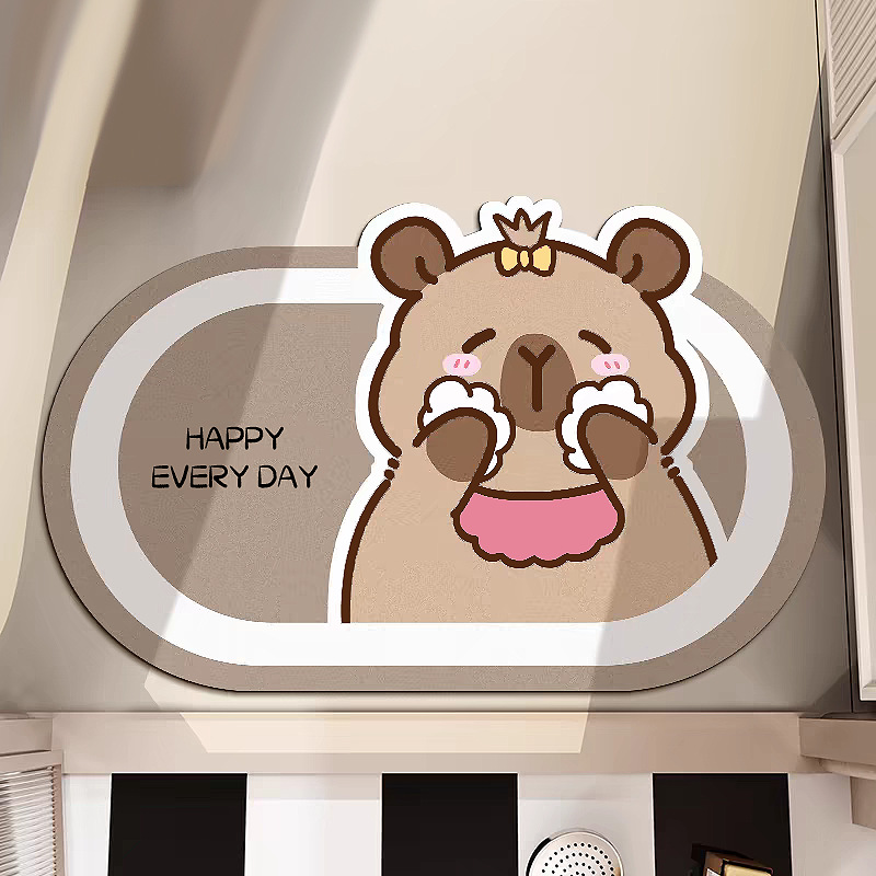 만화 귀여운 Diatom 진흙 매트 욕실 슈퍼 흡수성 빠른 건조 욕실 문 절단 가능한 발 매트
