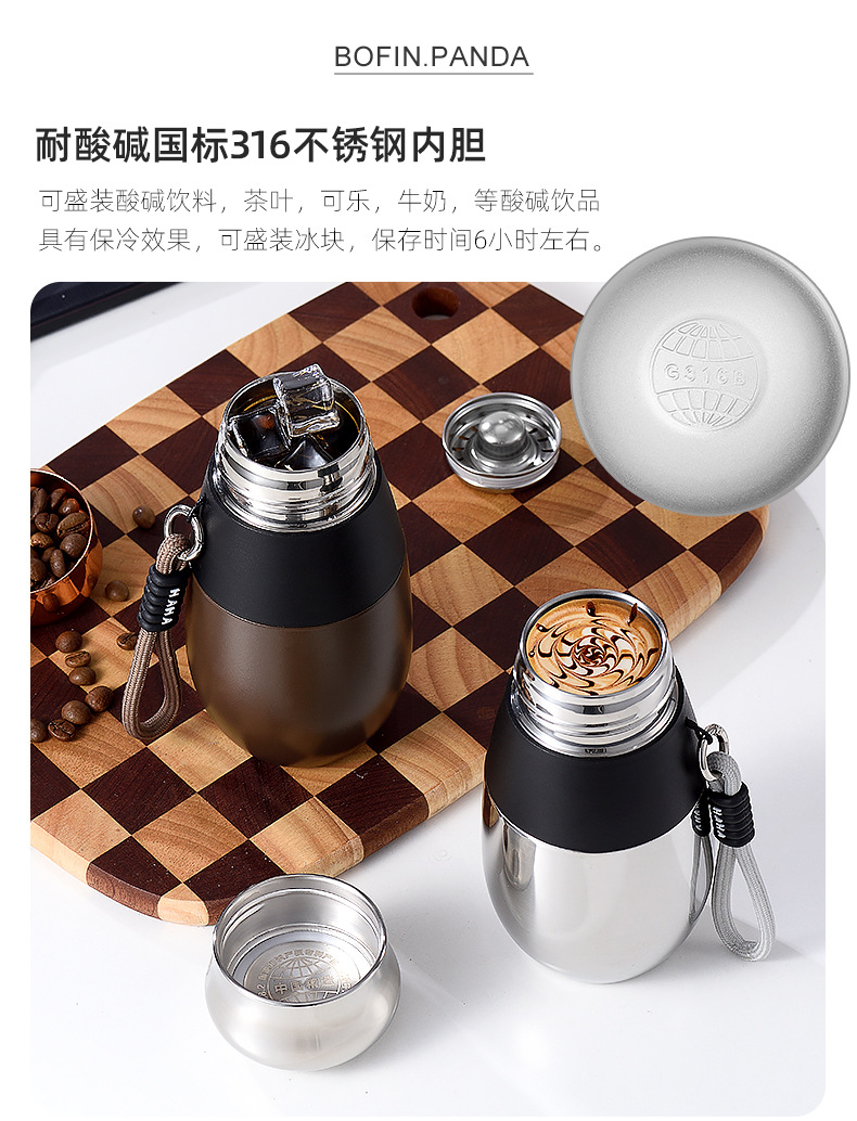 BOFIN 스포츠 야외 316 스테인레스 스틸 빅 벨리 보온병 컵 끈 휴대용 학생 음주 컵 조각