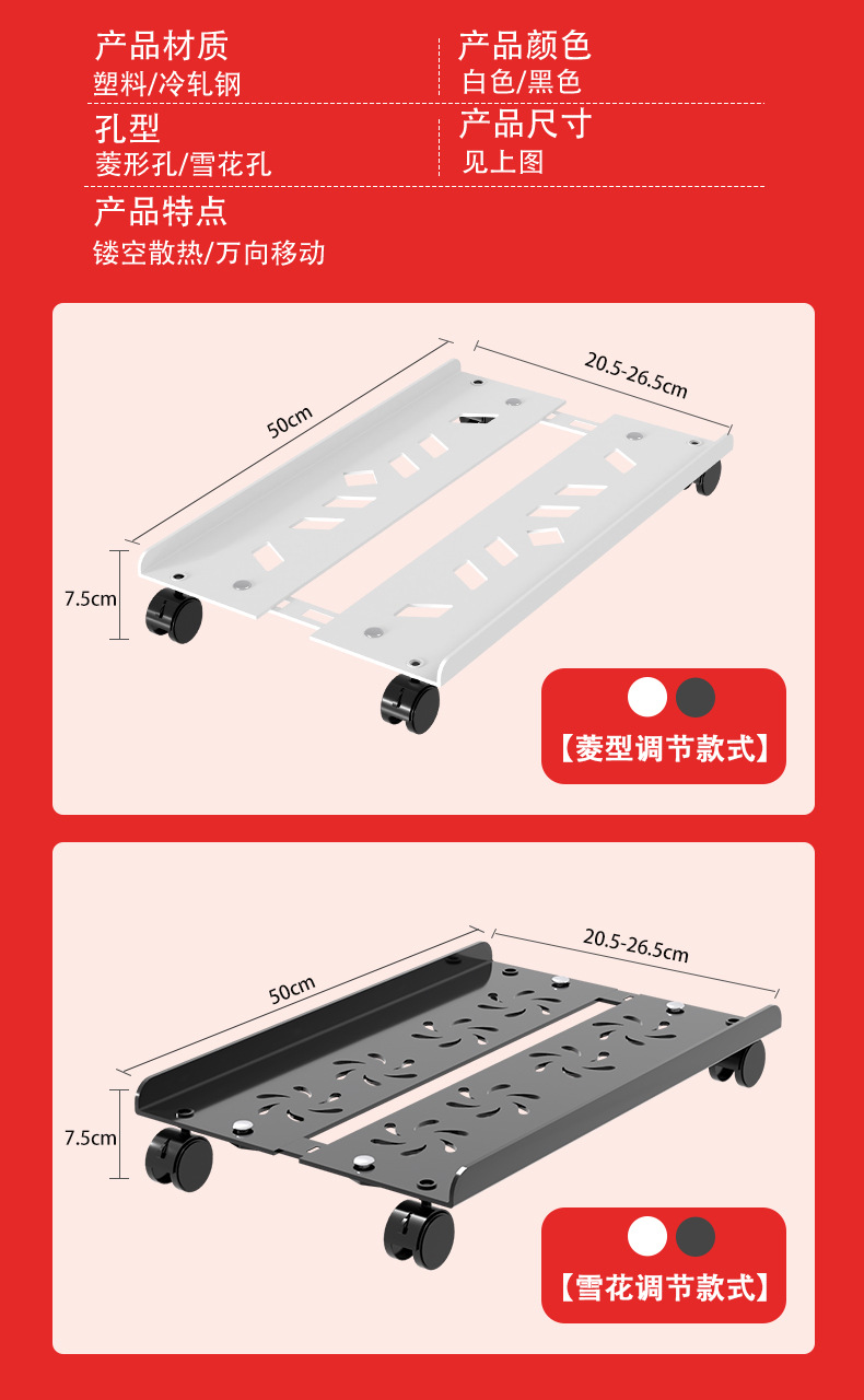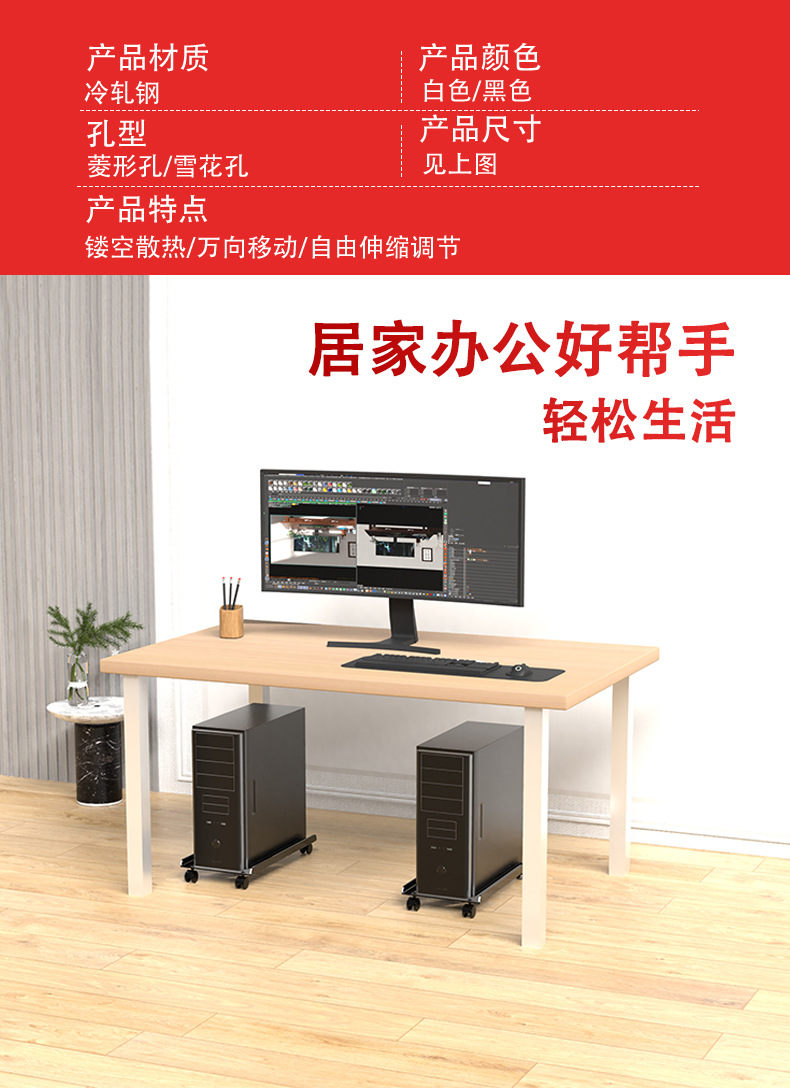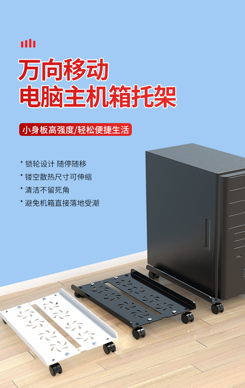 컴퓨터 호스트 브래킷 풀리 스토리지 랙 홈 데스크탑 오피스 트레이가있는 이동식 섀시 베이스