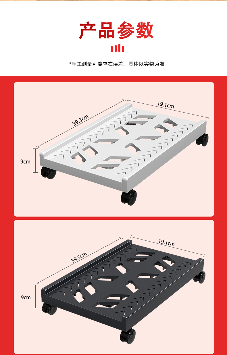컴퓨터 호스트 브래킷 풀리 스토리지 랙 홈 데스크탑 오피스 트레이가있는 이동식 섀시 베이스스토어 가기