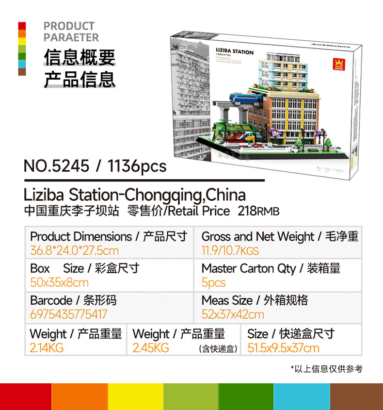 Wange 빌딩 블록 광장 충칭 리지바 역 중국 빌딩 모델 작은 입자 빌딩 장식품 호환 5245스토어 가기
