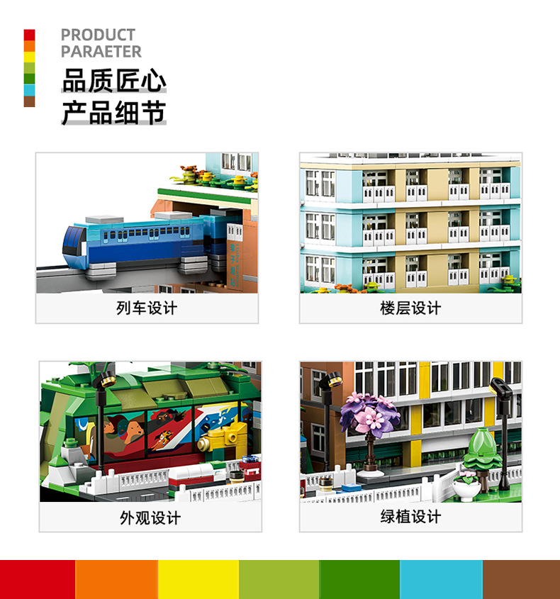 Wange 빌딩 블록 광장 충칭 리지바 역 중국 빌딩 모델 작은 입자 빌딩 장식품 호환 5245
