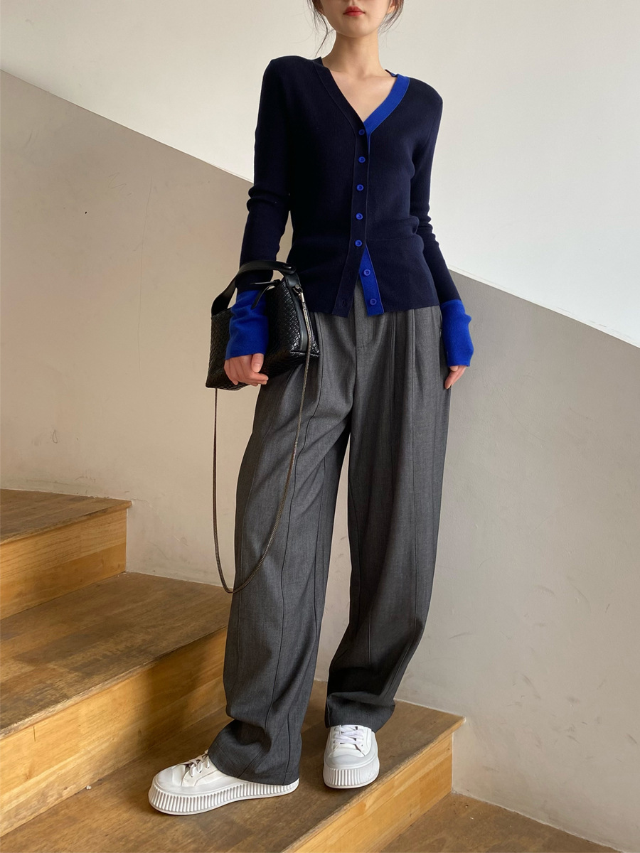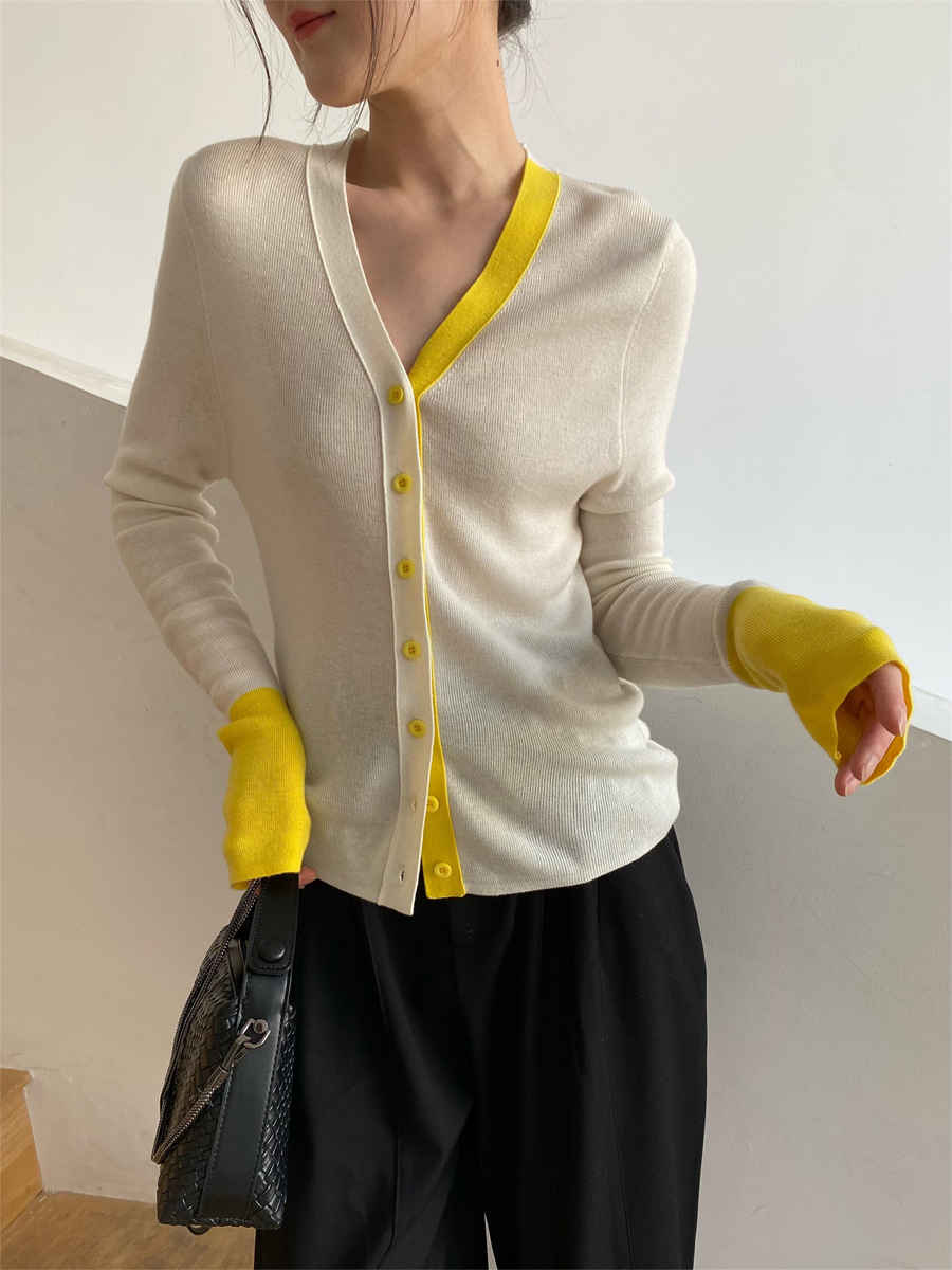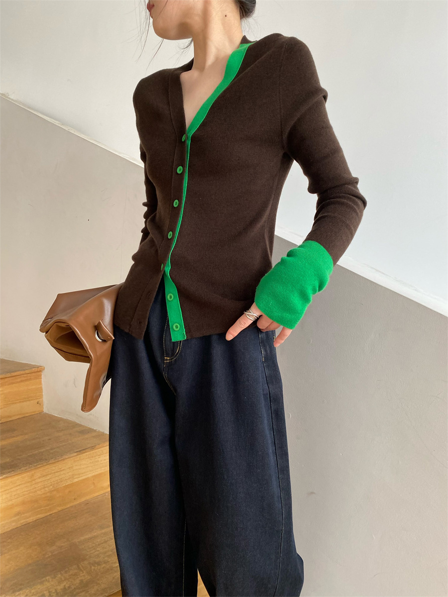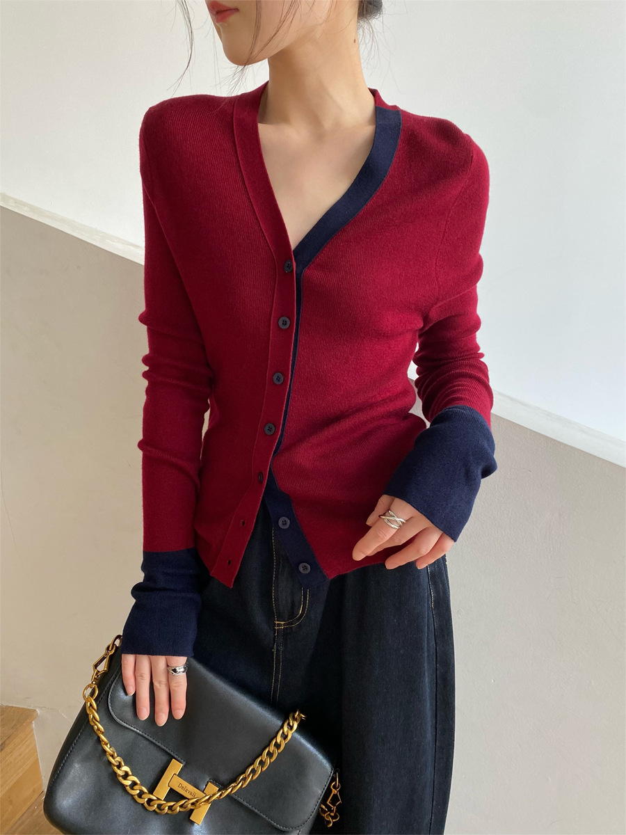 2024 새로운 V 넥 패션 올 매치 컬러 매칭 양 울 슬리밍 연령 감소 니트 카디건 싱글 브레스트 스웨터스토어 가기