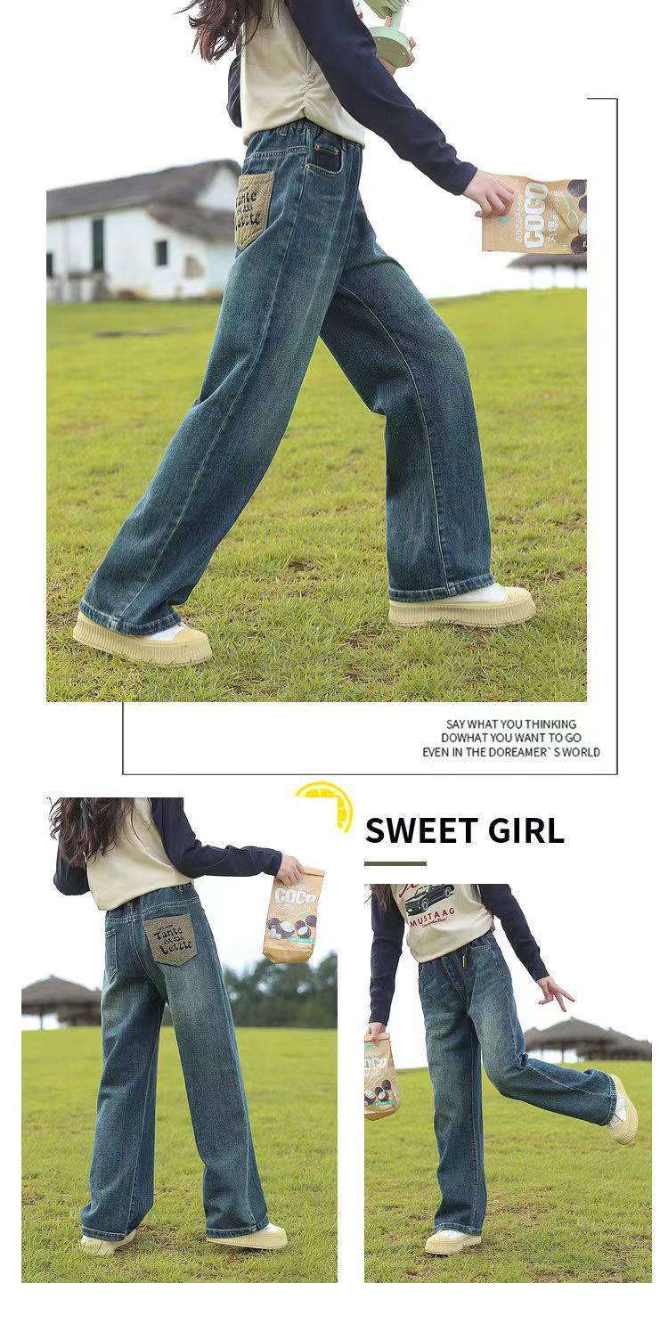 여자 기모 넓은 다리 바지 2024 겨울 새 스타일 여자 서양식 두꺼운 따뜻한 느슨한 데님 스트레이트 다리 바지스토어 가기