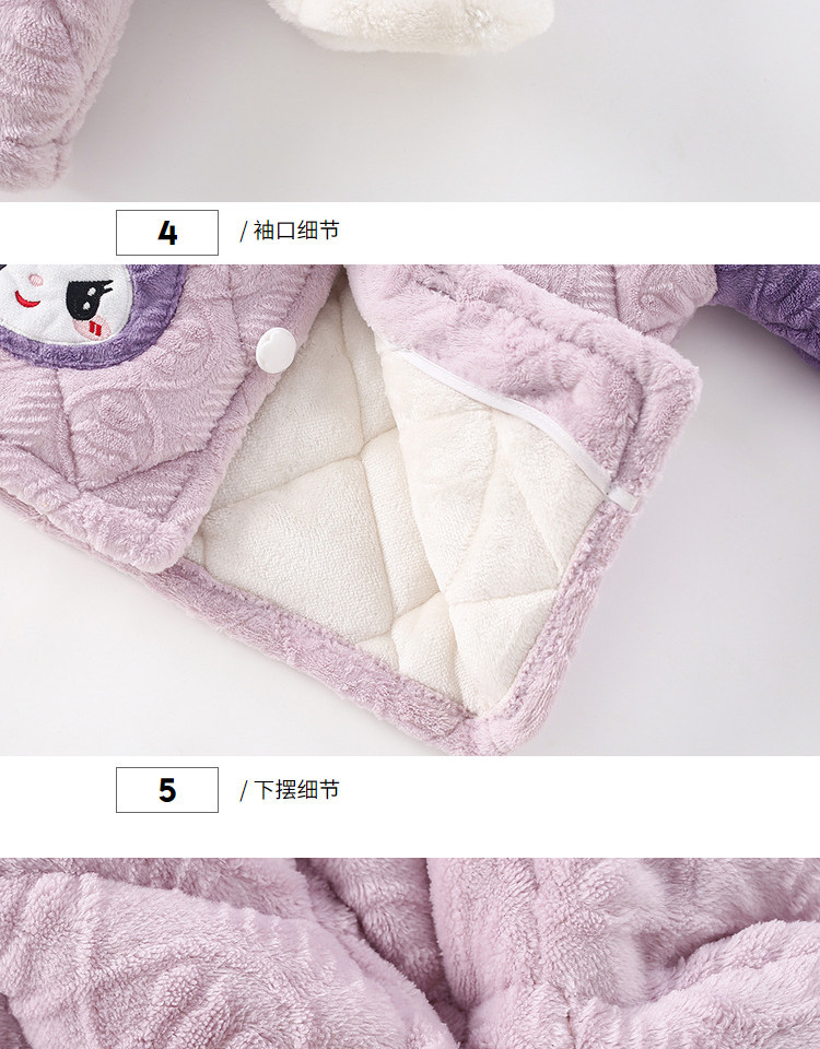 겨울 어린이 3 층 퀼트 두꺼운 플란넬 따뜻한 잠옷 세트 홈 옷 두꺼운 소녀 후드