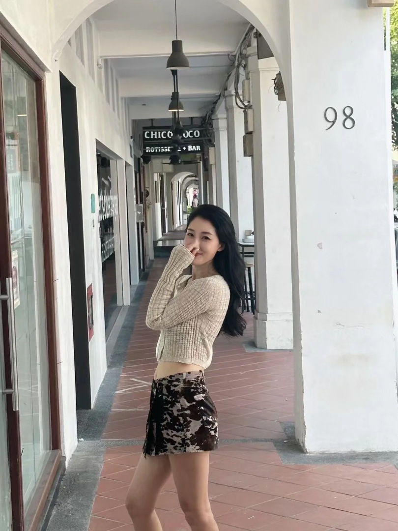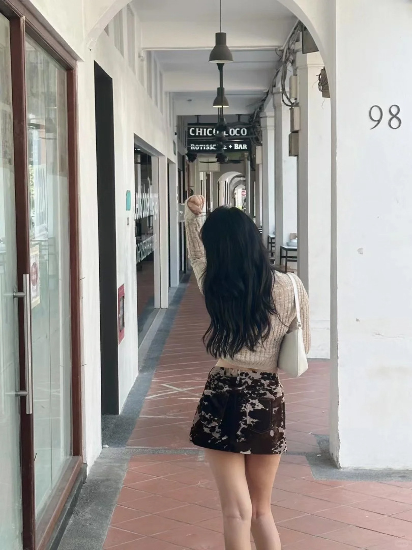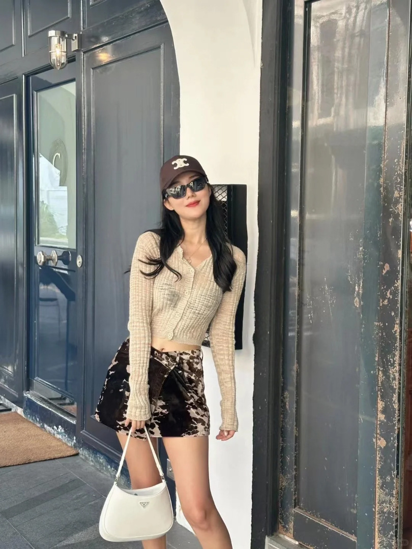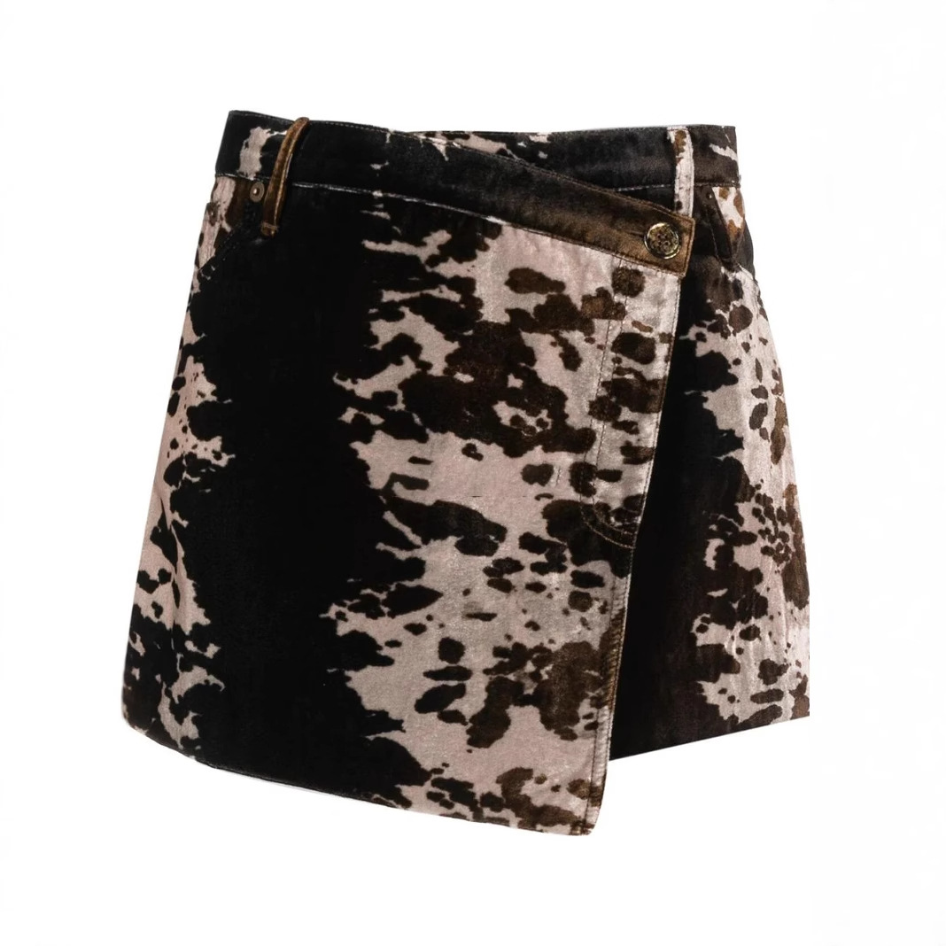 북유럽 빈티지 골동품 스플래시-잉크 인쇄 미니 스커트 넥타이-염료 원-단추 비스듬한 스티칭 미국식 Ins 스커트스토어 가기