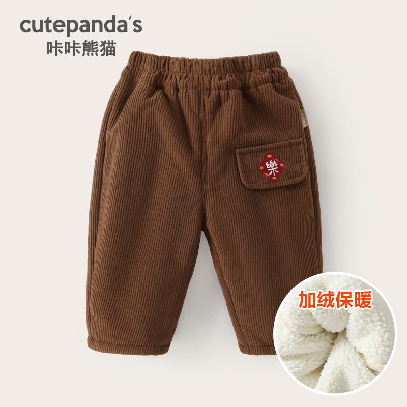 아기 새해 인사말 옷 어린이 새해 기모 두꺼운 긴 바지 겨울 옷 가을과 겨울 소년과 소녀 아기의 새해 면화 바지스토어 가기