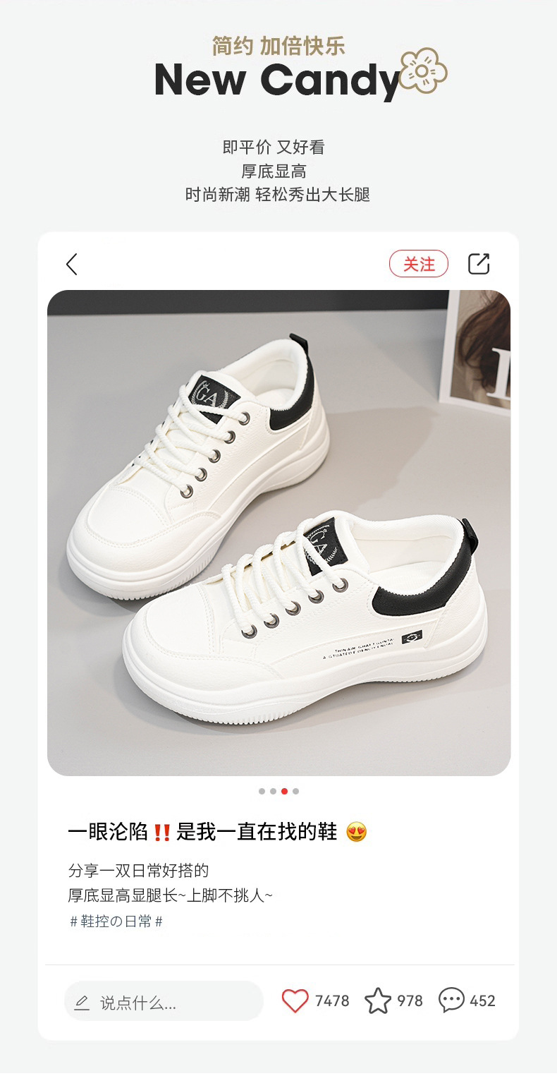 2024 년 가을 신상품 한국 버전의 작은 흰색 신발 높이 보드 신발 두꺼운 바닥 거리 캐주얼 신발 운동화 Q820