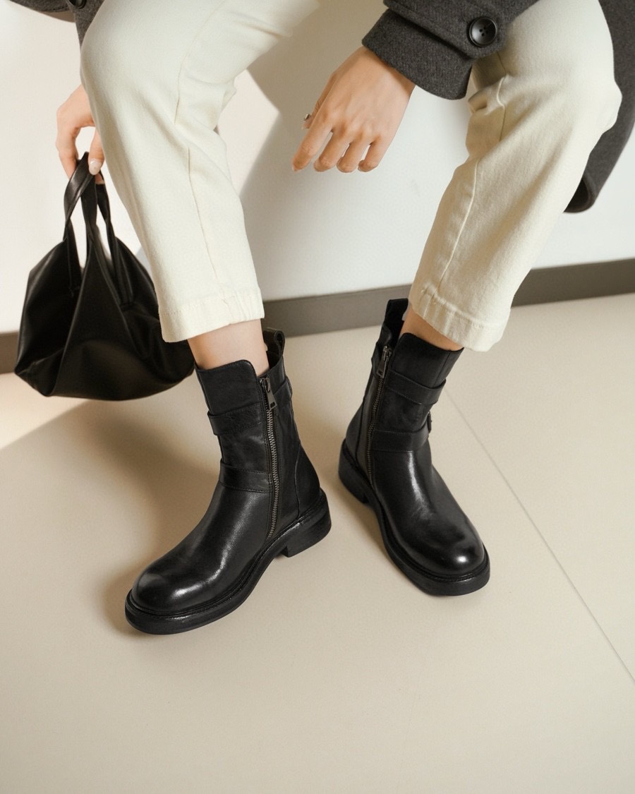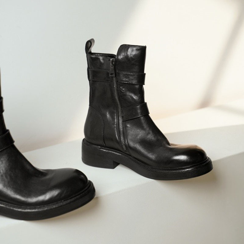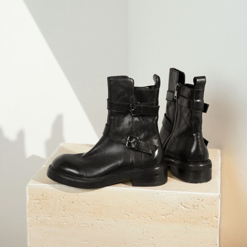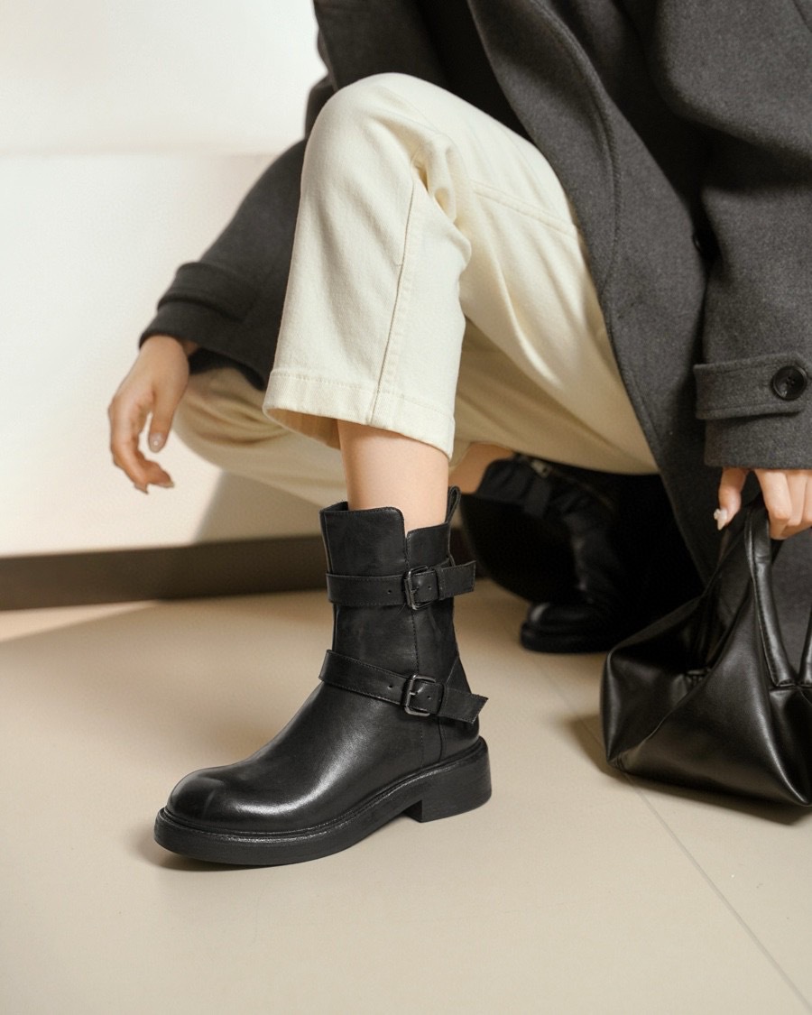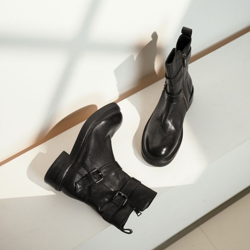 영국 스타일 야채 태닝 카우 히드 마틴 부츠 더블 브레스트 쇼트 부츠 여성용 부츠 빅 헤드 부츠 더비 부츠 오토바이 부츠 가을 겨울 여성스토어 가기