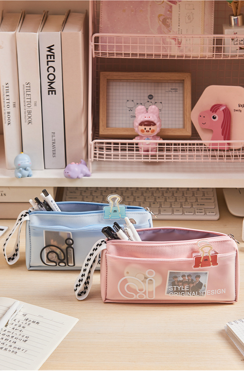 에카노 트라이앵글 연필 가방 높은 색상 가치 대용량 투명 문구 가방 초등학교 중학교 연필 케이스스토어 가기