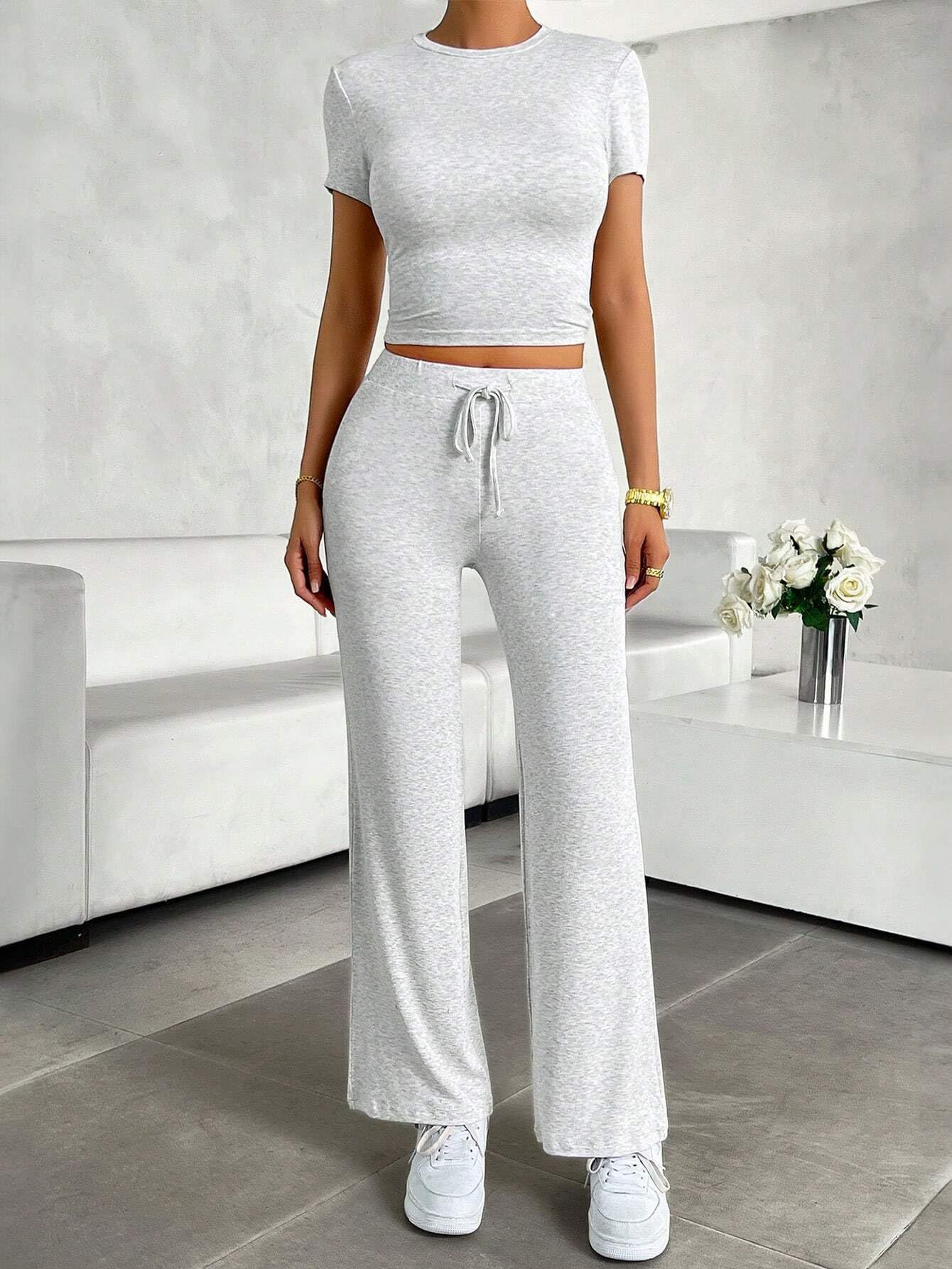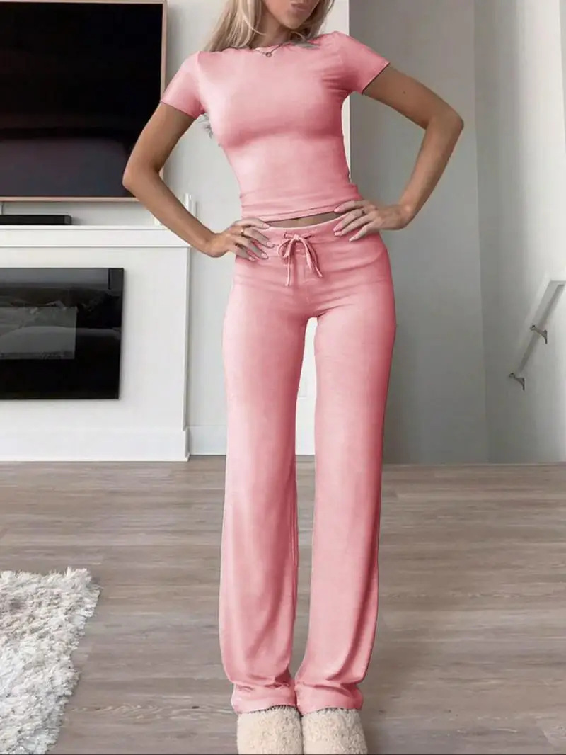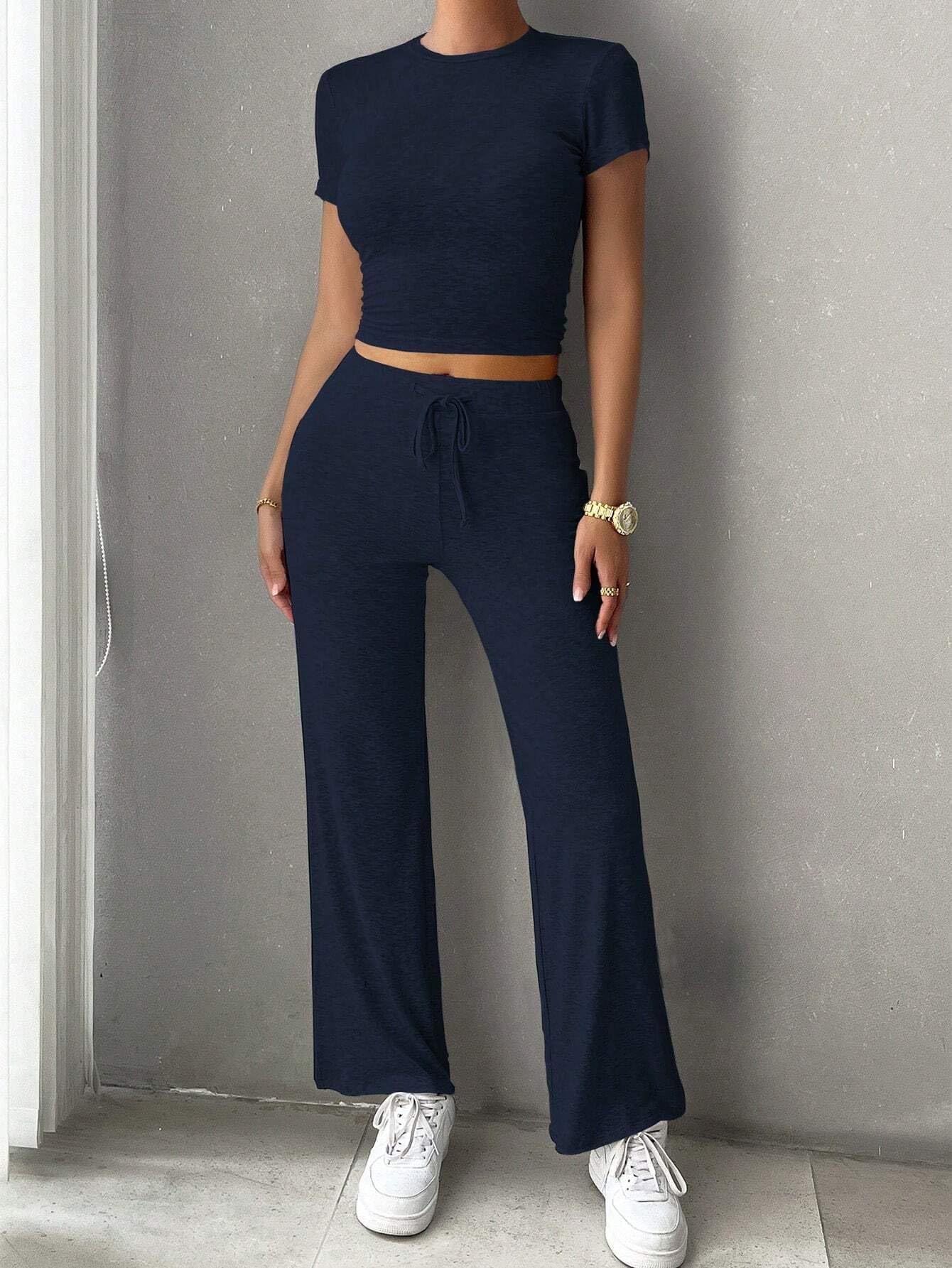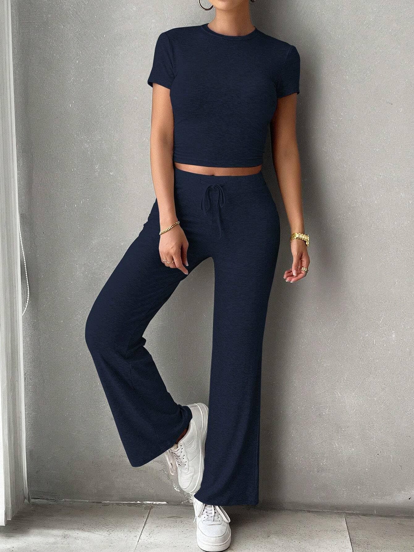아마존 유럽과 미국의 국경 2025 새로운 캐주얼 정장 반팔 탑과 바지 홈웨어 스포츠웨어 요가복