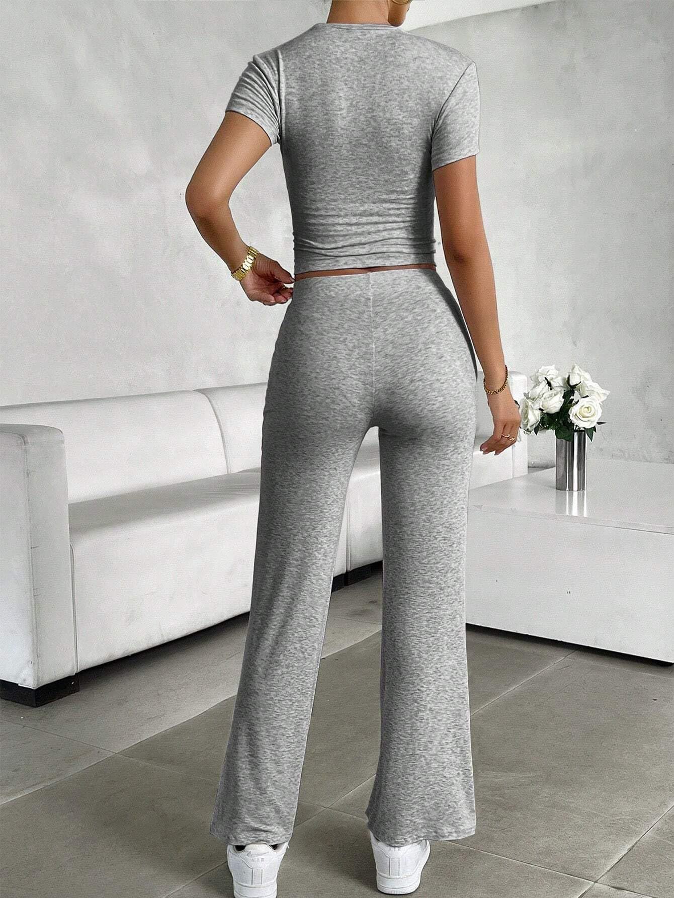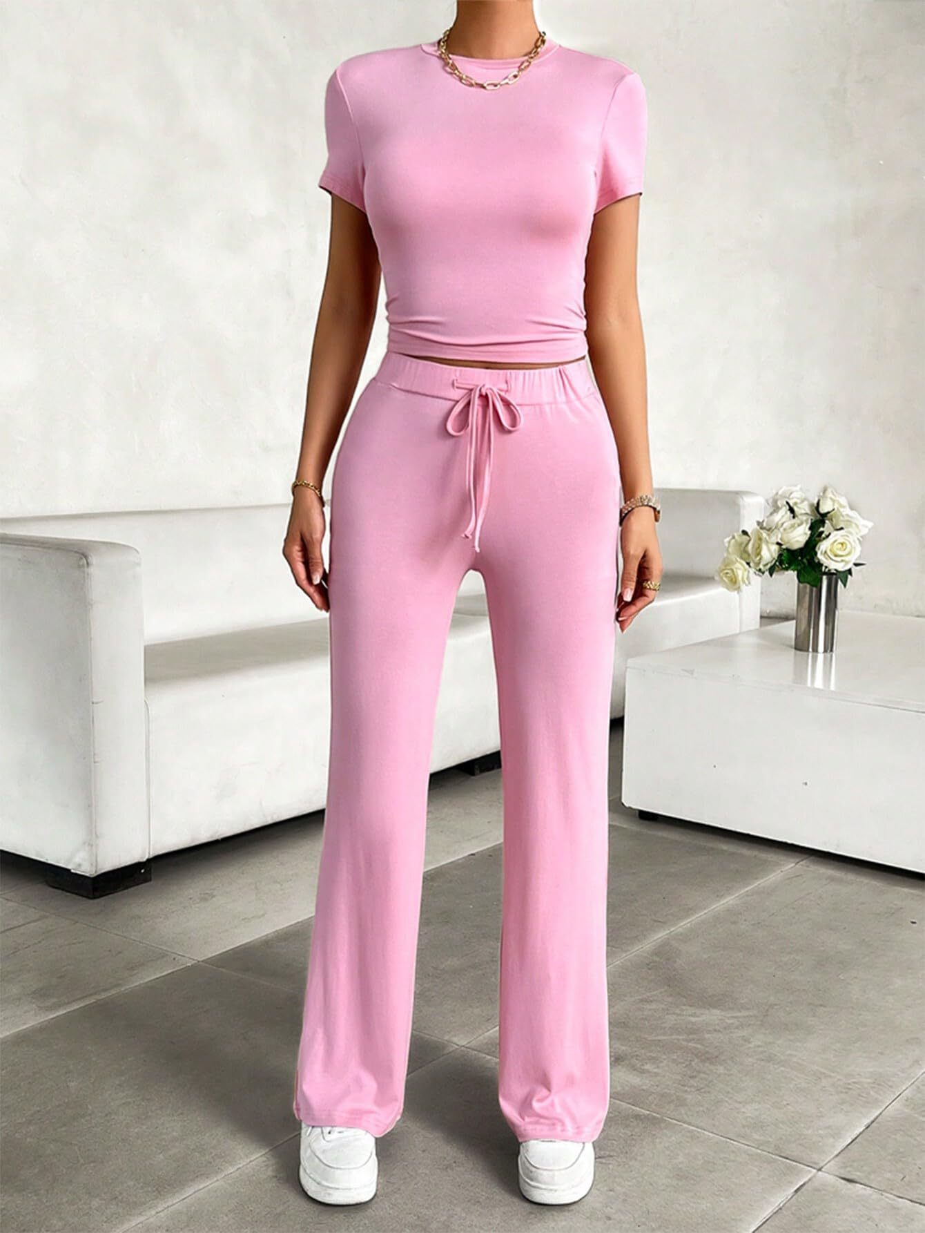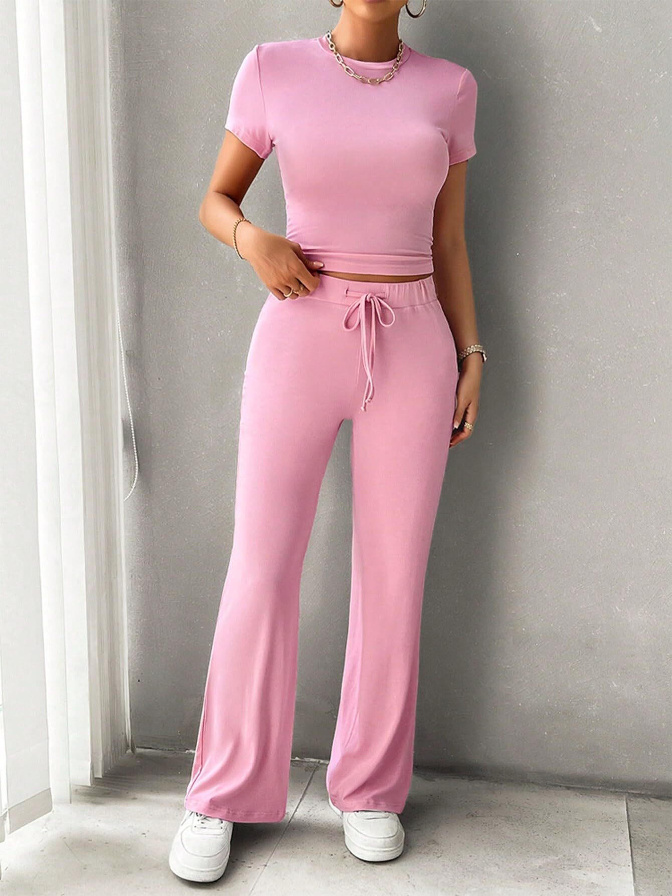 아마존 유럽과 미국의 국경 2025 새로운 캐주얼 정장 반팔 탑과 바지 홈웨어 스포츠웨어 요가복