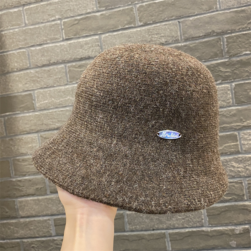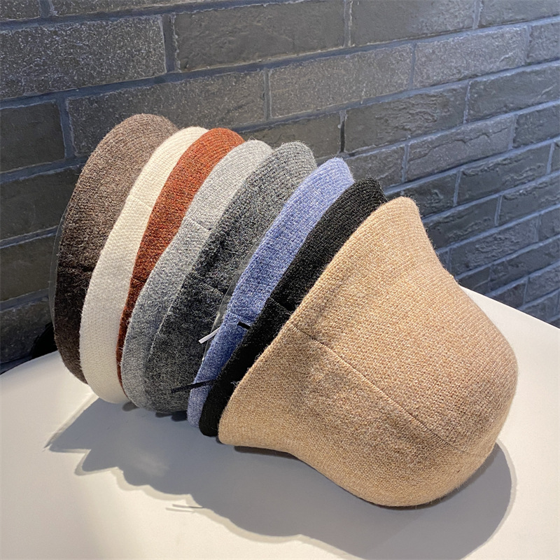 한국 스타일 따뜻한 니트 양모 모자 여성의 가을 및 겨울 새로운 전선 긴 후방 짧은 어부 모자 그물 축하 솔리드 컬러 일반 냄비 모자