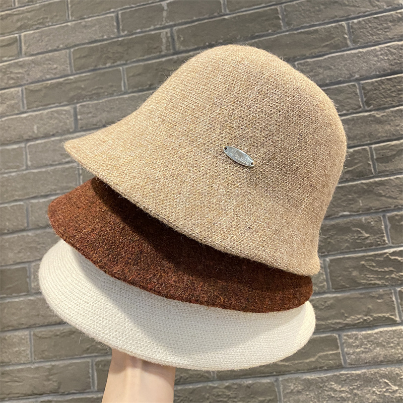 한국 스타일 따뜻한 니트 양모 모자 여성의 가을 및 겨울 새로운 전선 긴 후방 짧은 어부 모자 그물 축하 솔리드 컬러 일반 냄비 모자스토어 가기