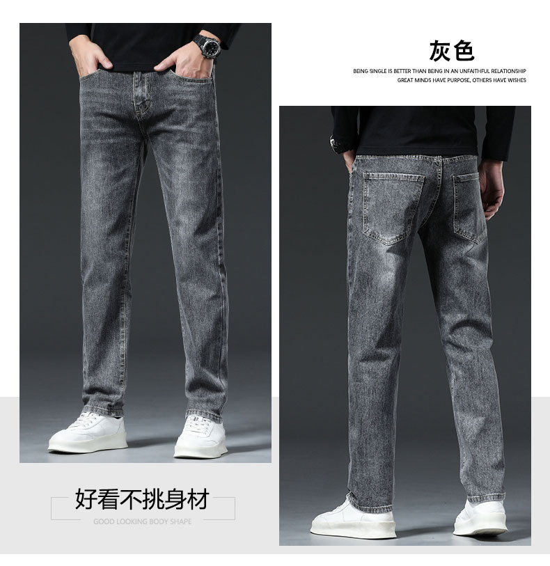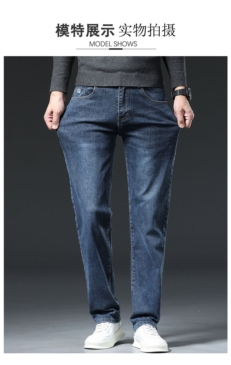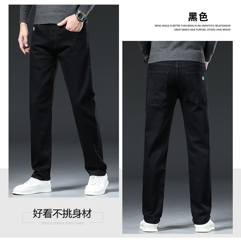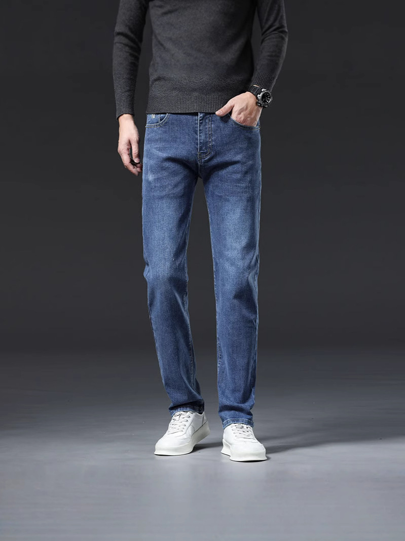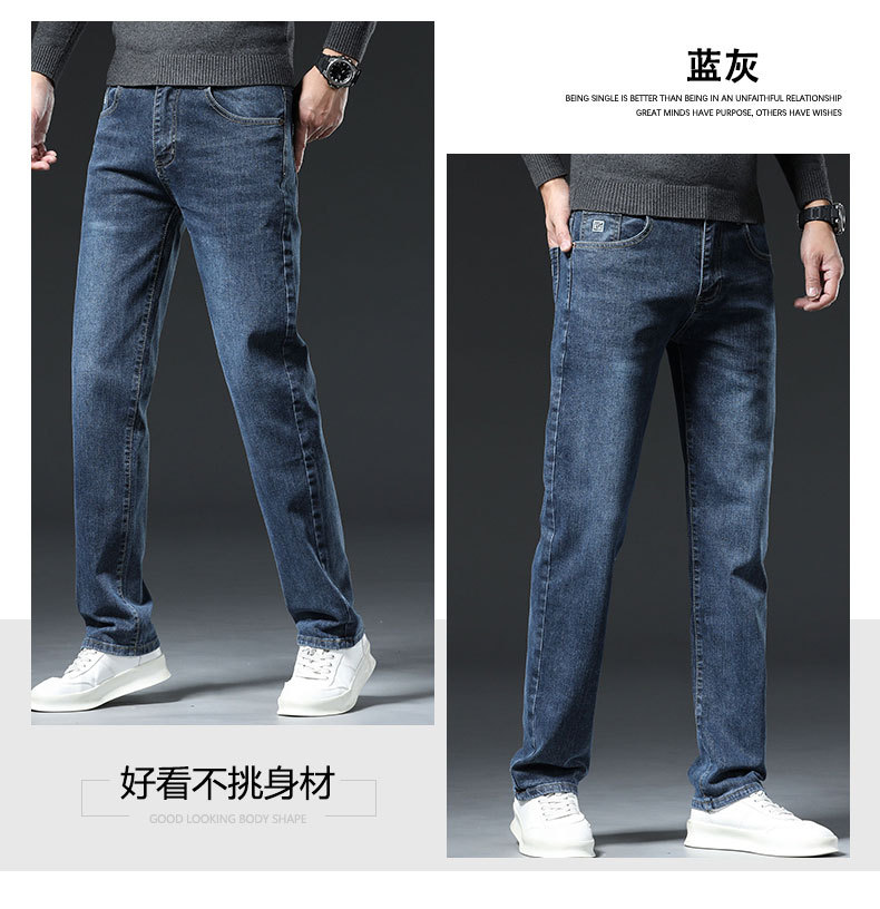 남자의 봄과 가을 스트레치 청바지 가을과 겨울 2024 패션 새로운 스트레이트 슬림 핏 스트레치 캐주얼 긴 바지스토어 가기