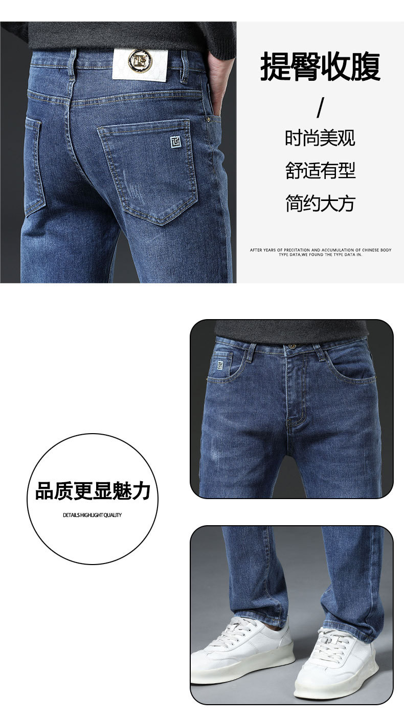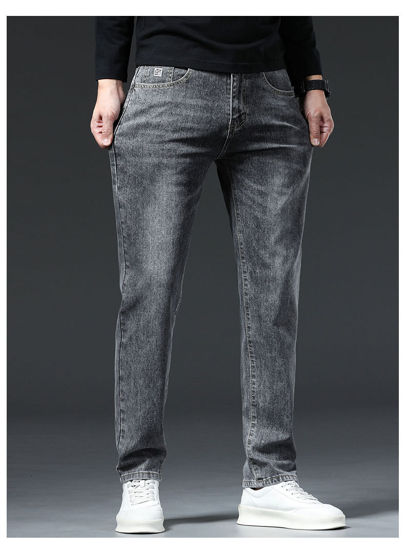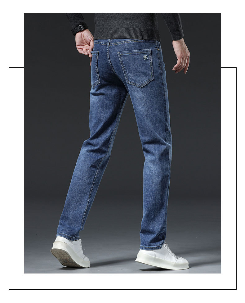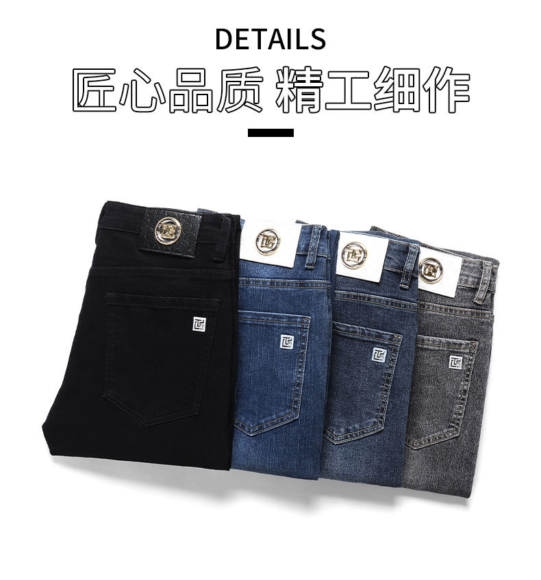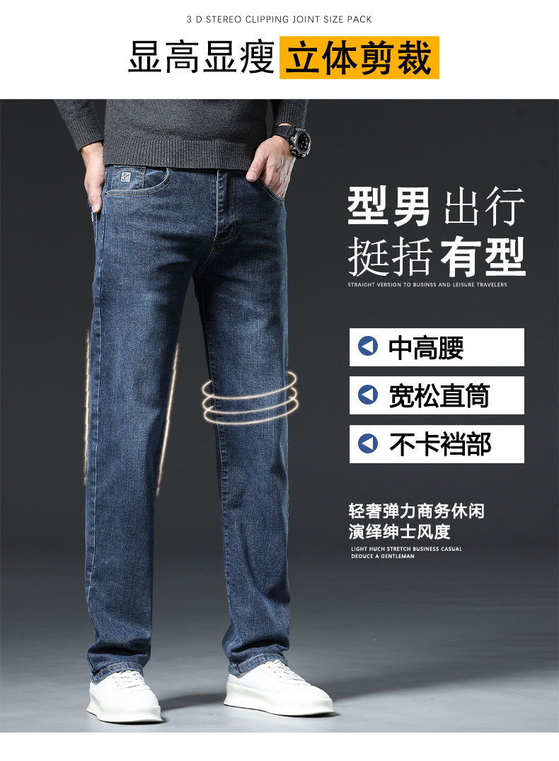 남자의 봄과 가을 스트레치 청바지 가을과 겨울 2024 패션 새로운 스트레이트 슬림 핏 스트레치 캐주얼 긴 바지스토어 가기