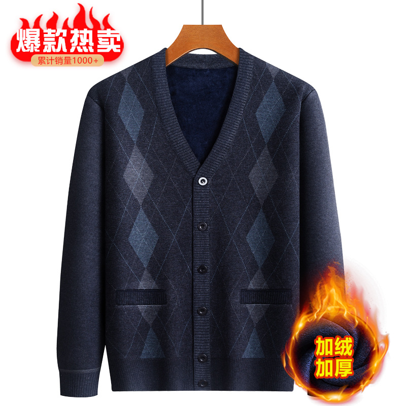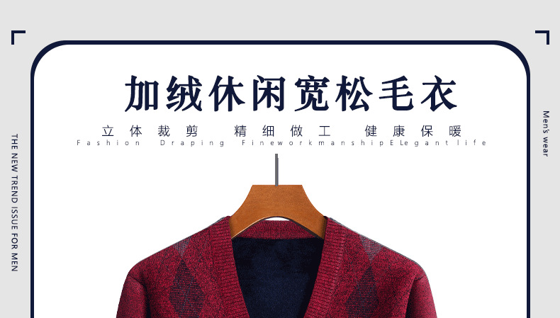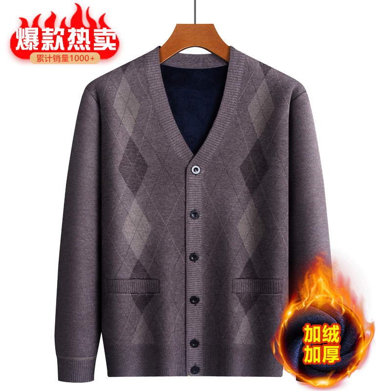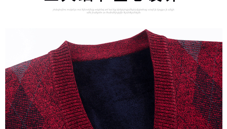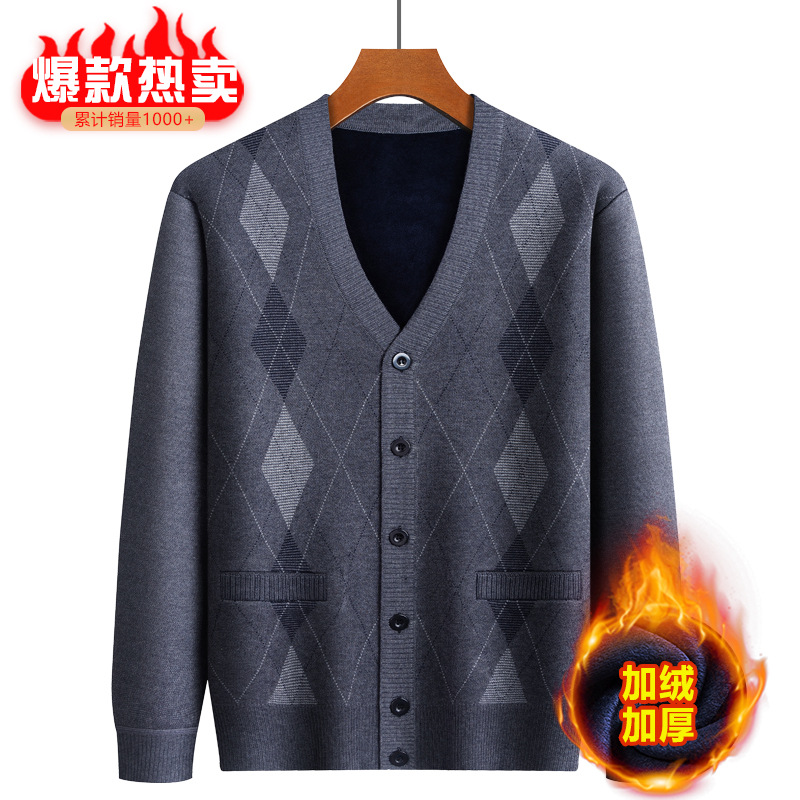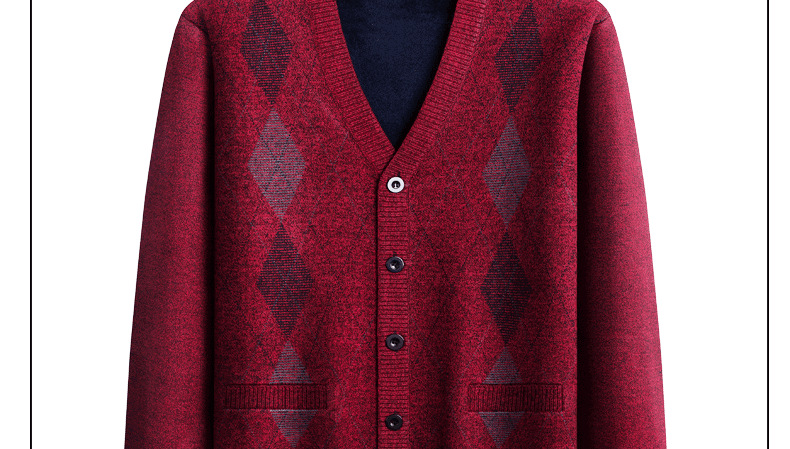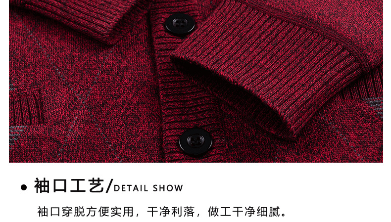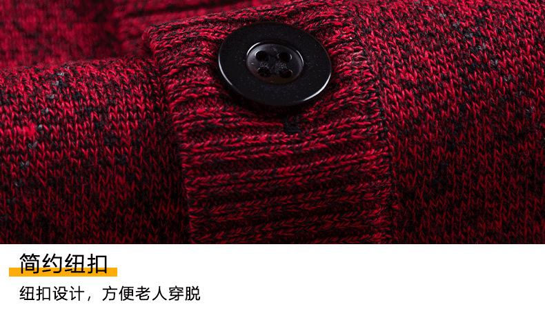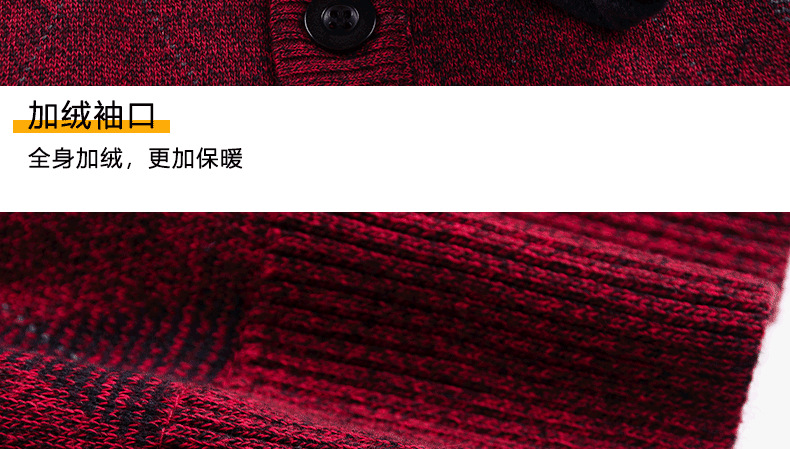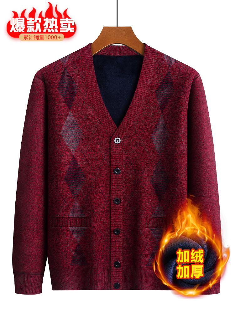 가을과 겨울 중년 남성의 따뜻한 기모 두꺼운 코트 북부 레드 긴 소매 단색 자카드 기모 카디건스토어 가기