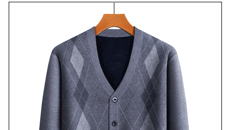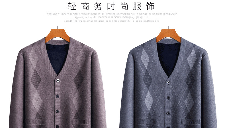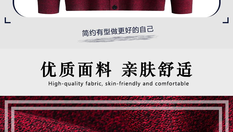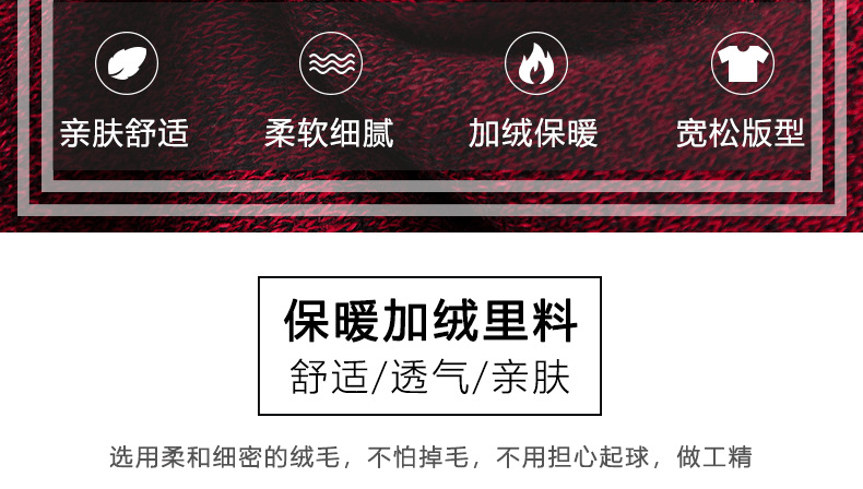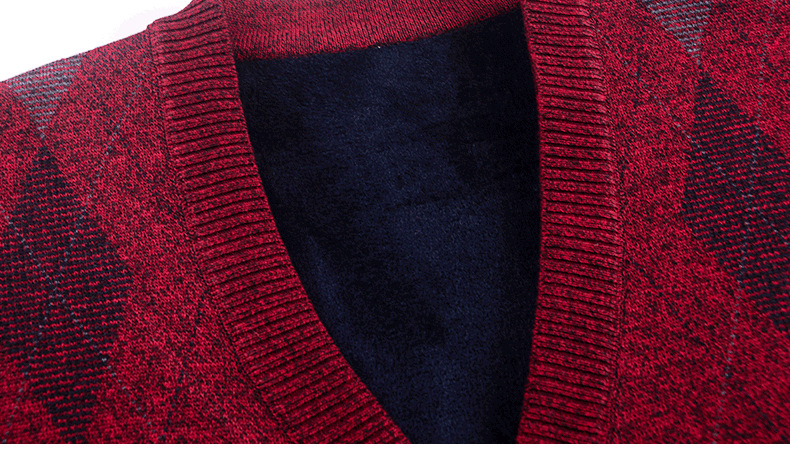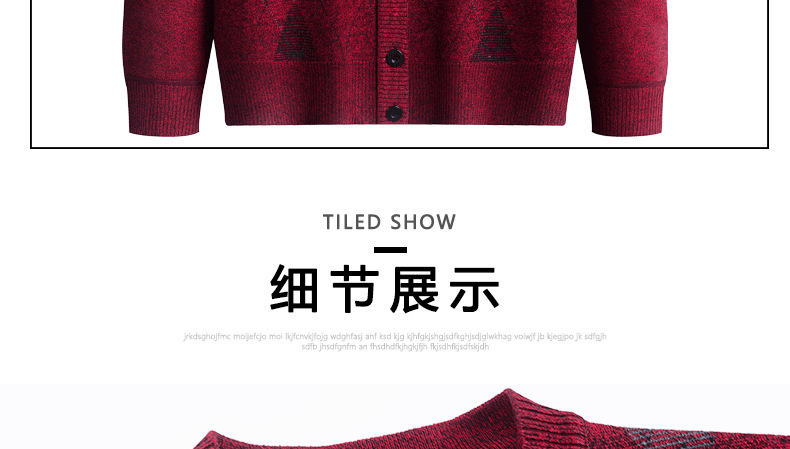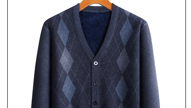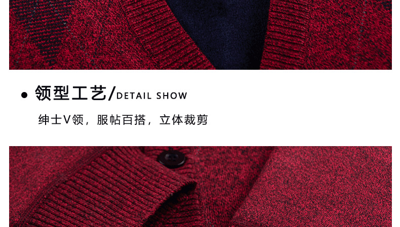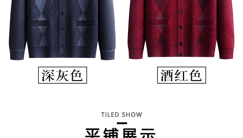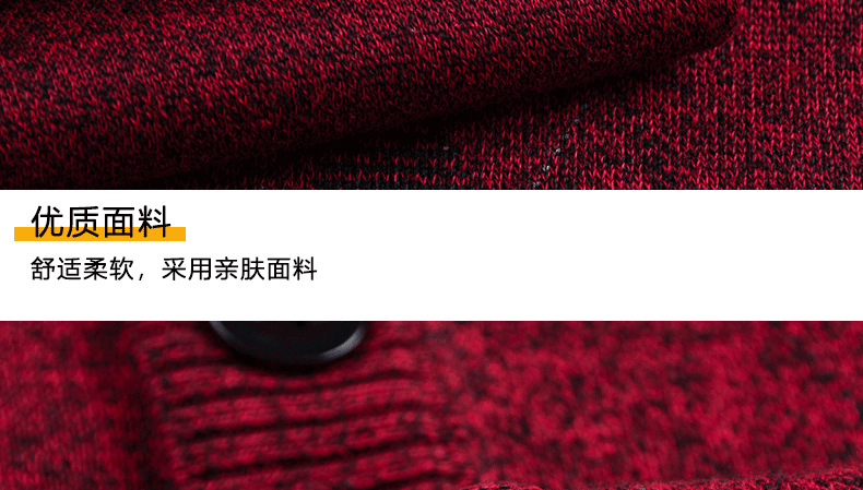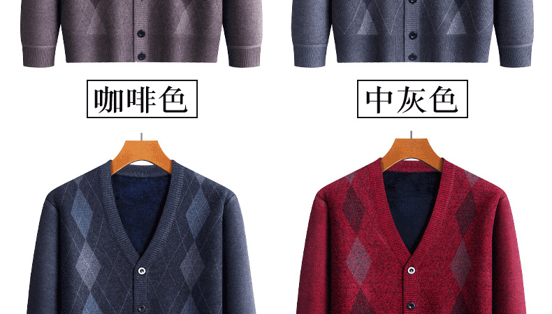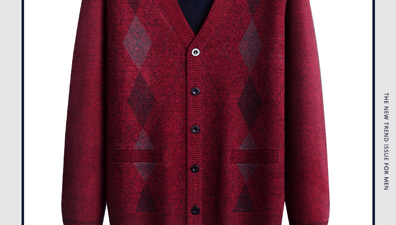 가을과 겨울 중년 남성의 따뜻한 기모 두꺼운 코트 북부 레드 긴 소매 단색 자카드 기모 카디건스토어 가기