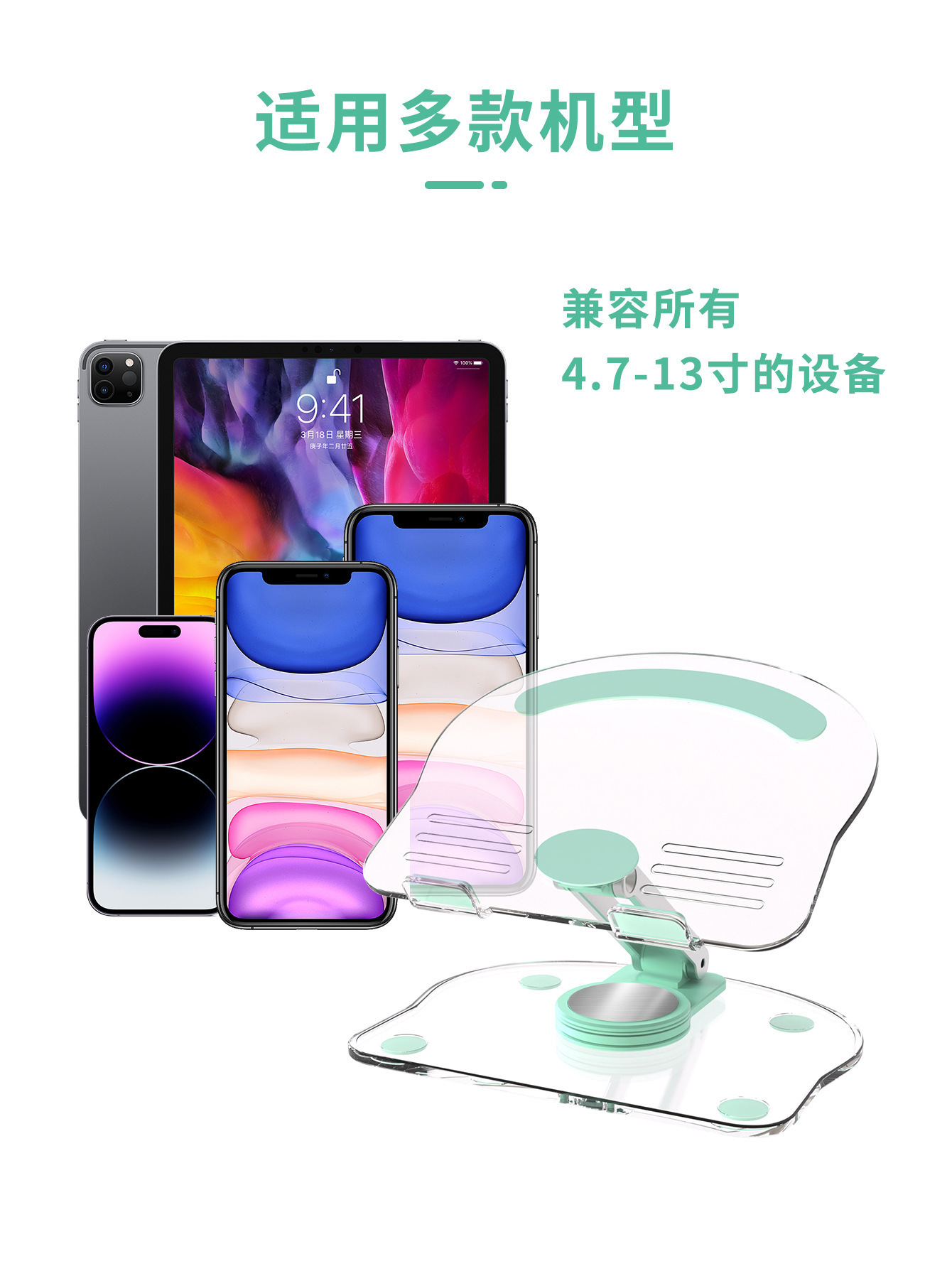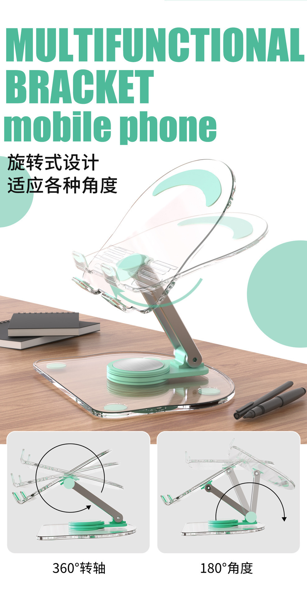 국경 간 투명 태블릿 스탠드 범용 데스크탑 접이식 게으른 접이식 회전 디스크 미끄럼 방지 지원 프레임 도매