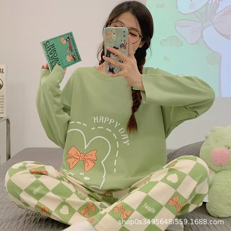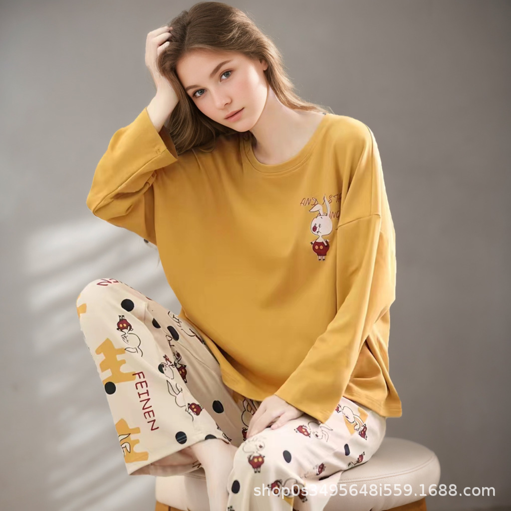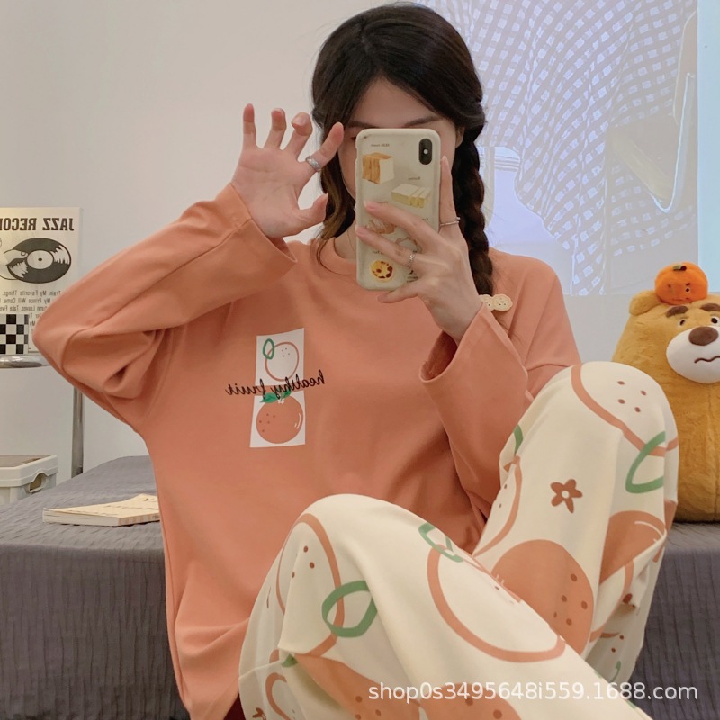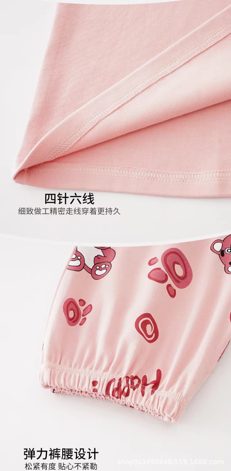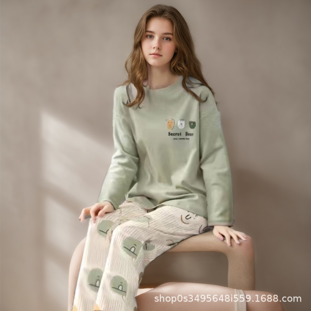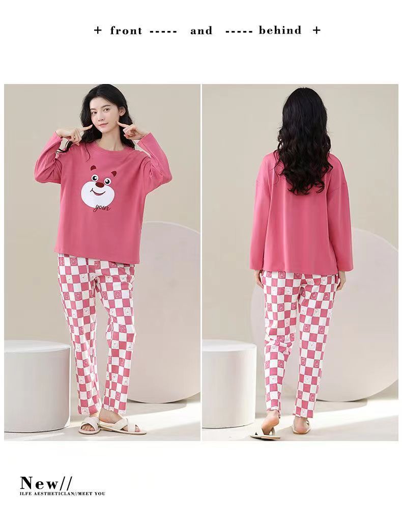 국경을 넘나 드는 유럽과 미국의 가을 새 딸기 곰 긴팔 바지 파자마 여성용 루즈 심플 아웃웨어 투피스 세트