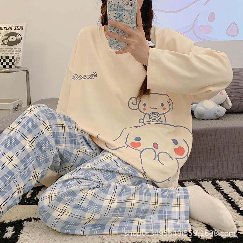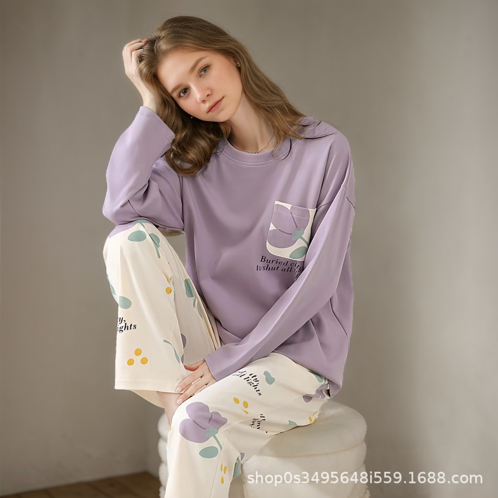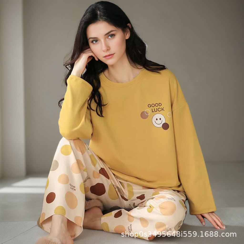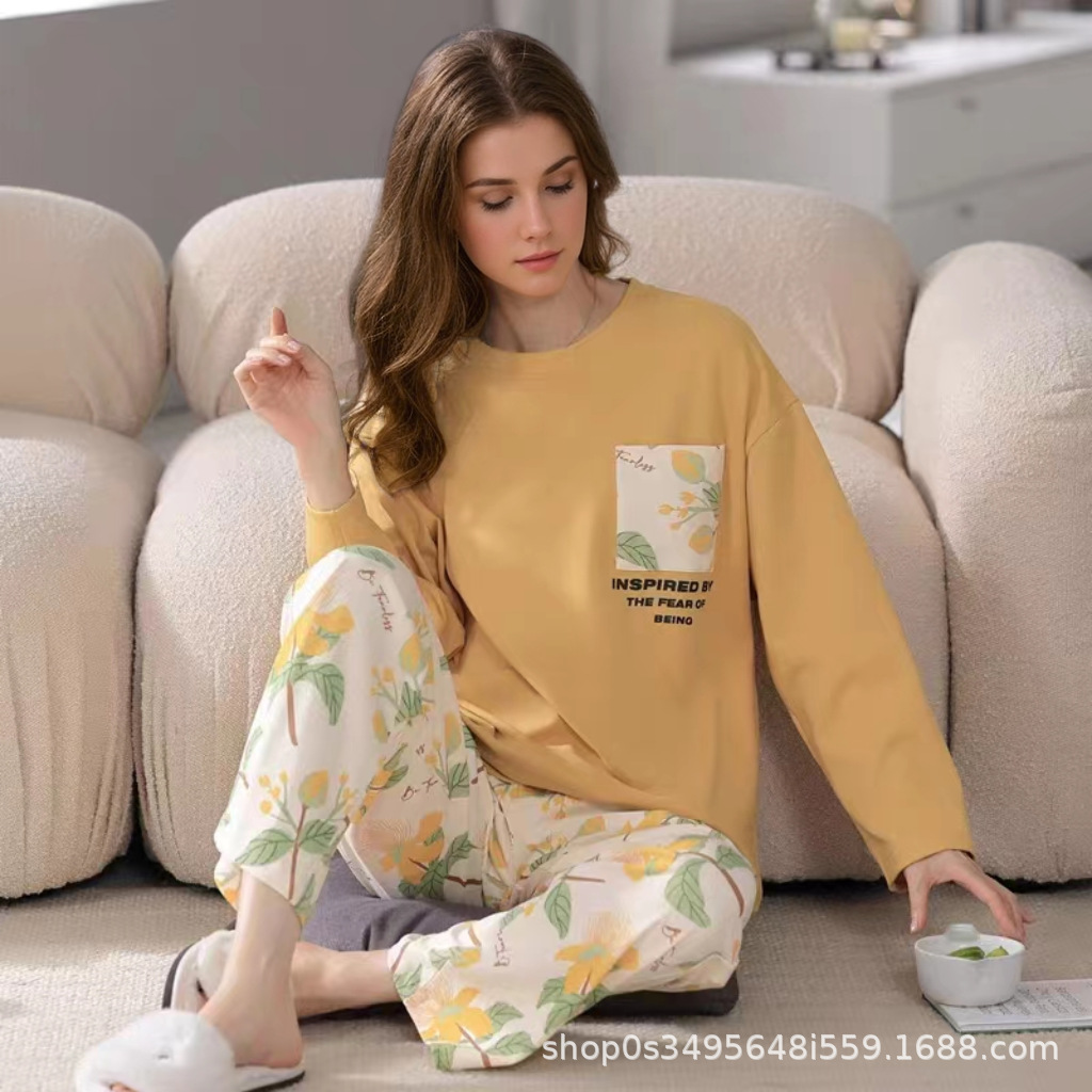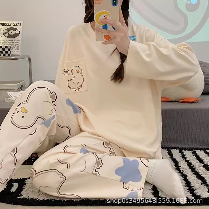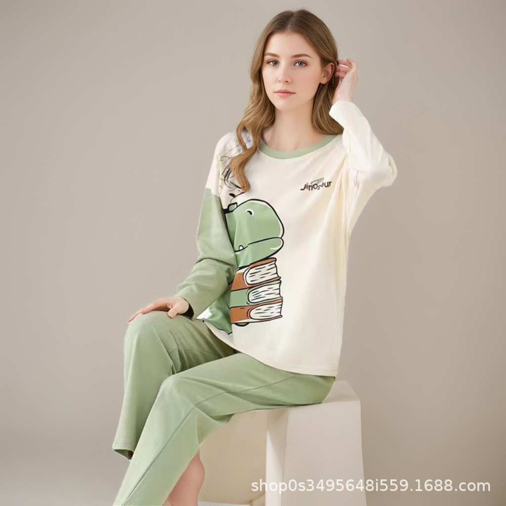 국경을 넘나 드는 유럽과 미국의 가을 새 딸기 곰 긴팔 바지 파자마 여성용 루즈 심플 아웃웨어 투피스 세트