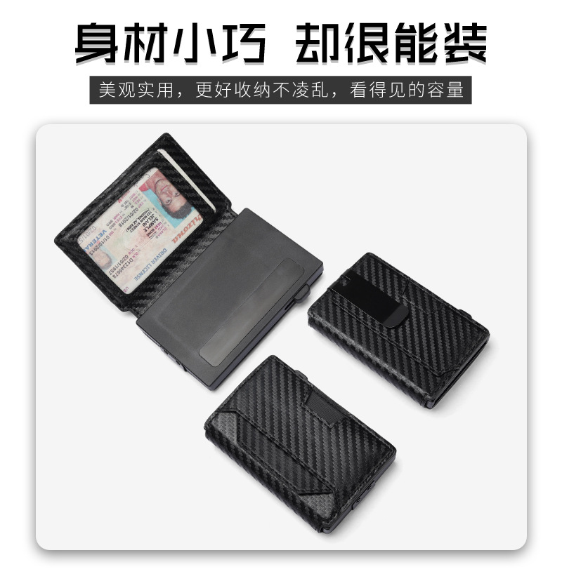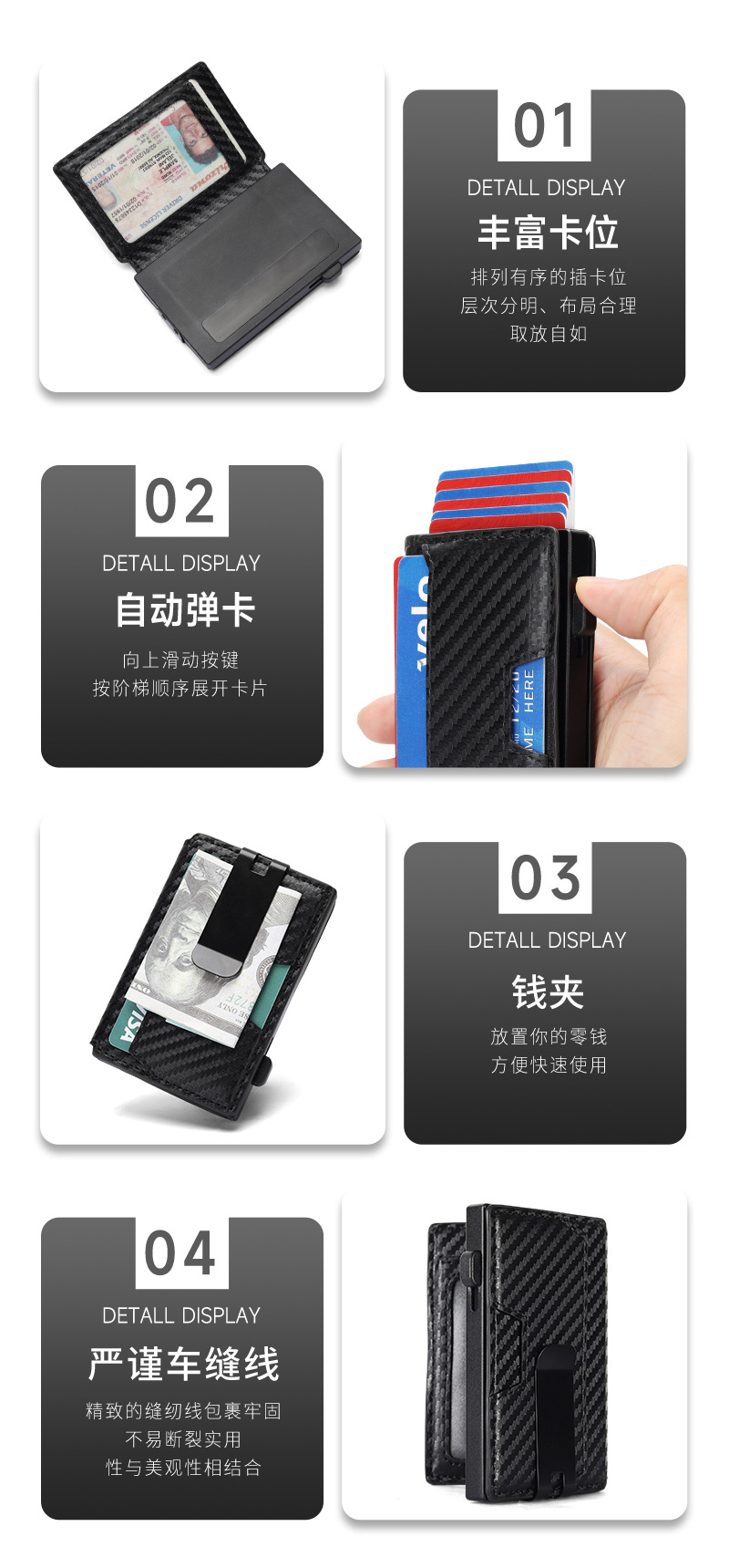 국경 간 대합 조개 껍질 금속 카드 상자 지갑 남성용 고급 자동 카드 가방 마이크로 화이버 탄소 섬유 가죽 지갑스토어 가기