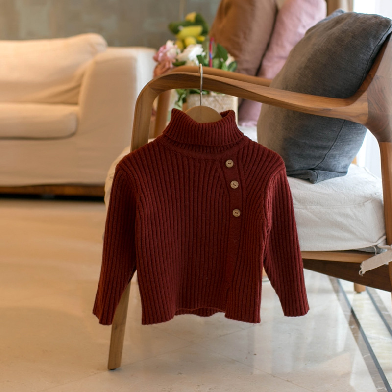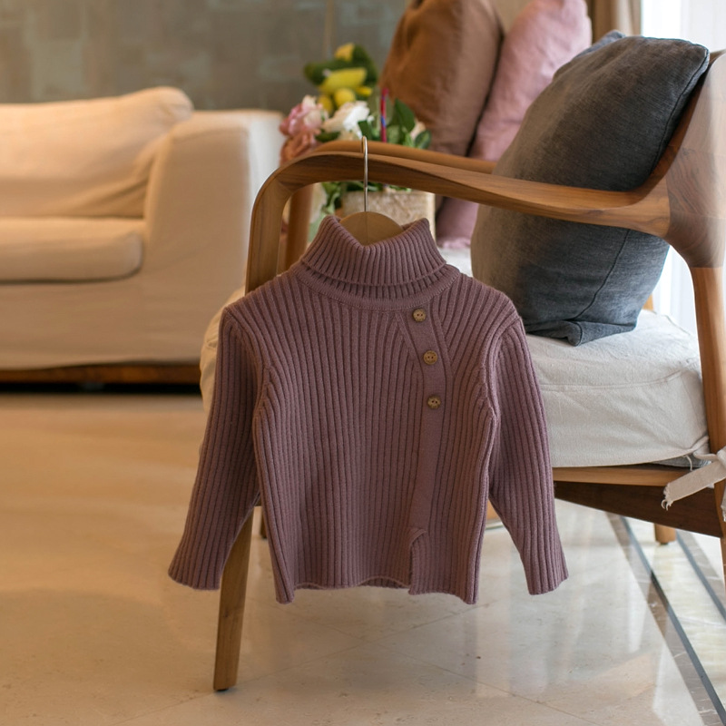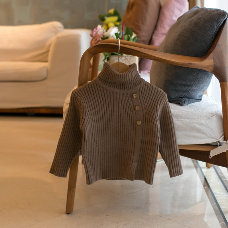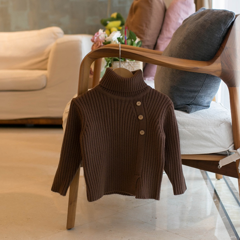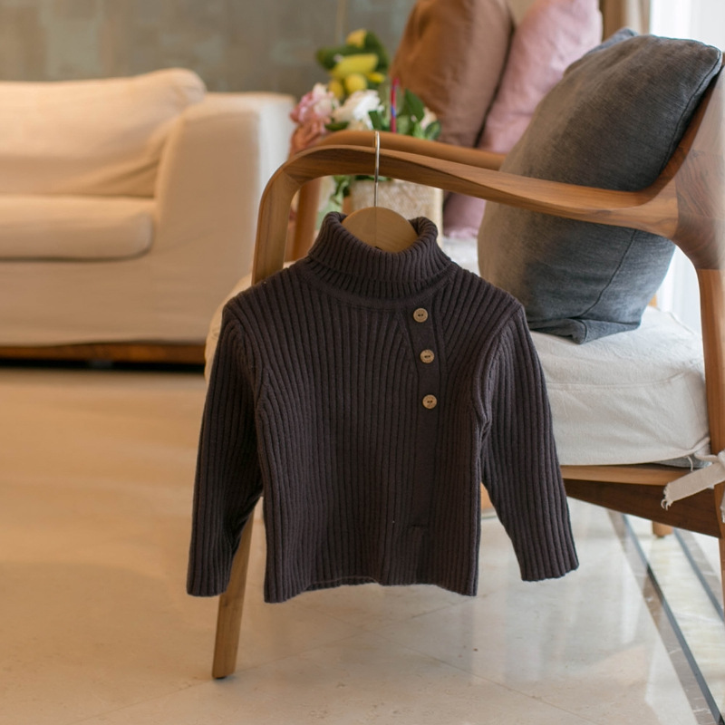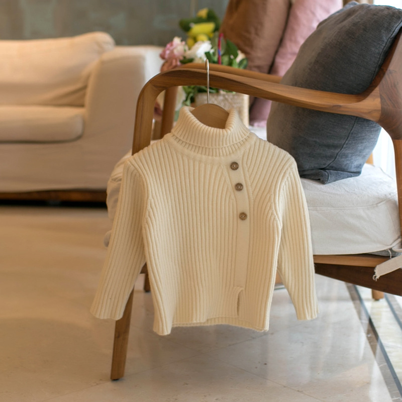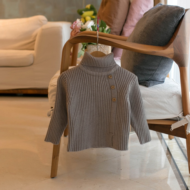2024 가을과 겨울의 새로운 높은 칼라 단색 버튼 스웨터 어린이 N173 의 세대스토어 가기