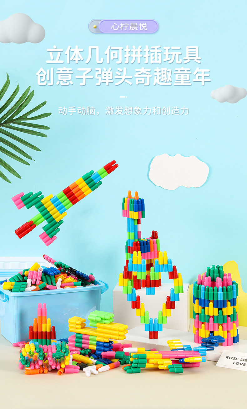 [엄격 선택] 어린이 플라스틱 삽입 로켓 총알 빌딩 블록 조립 교육 장난감 아기 소년 소녀스토어 가기