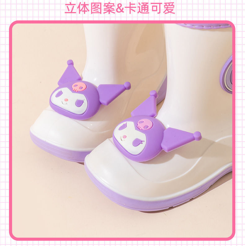 새로운 3 차원 머리 산리오 어린이 비 신발 소녀 유치원 쿨로 미 만화 아기 비 부츠 소녀 물 신발스토어 가기