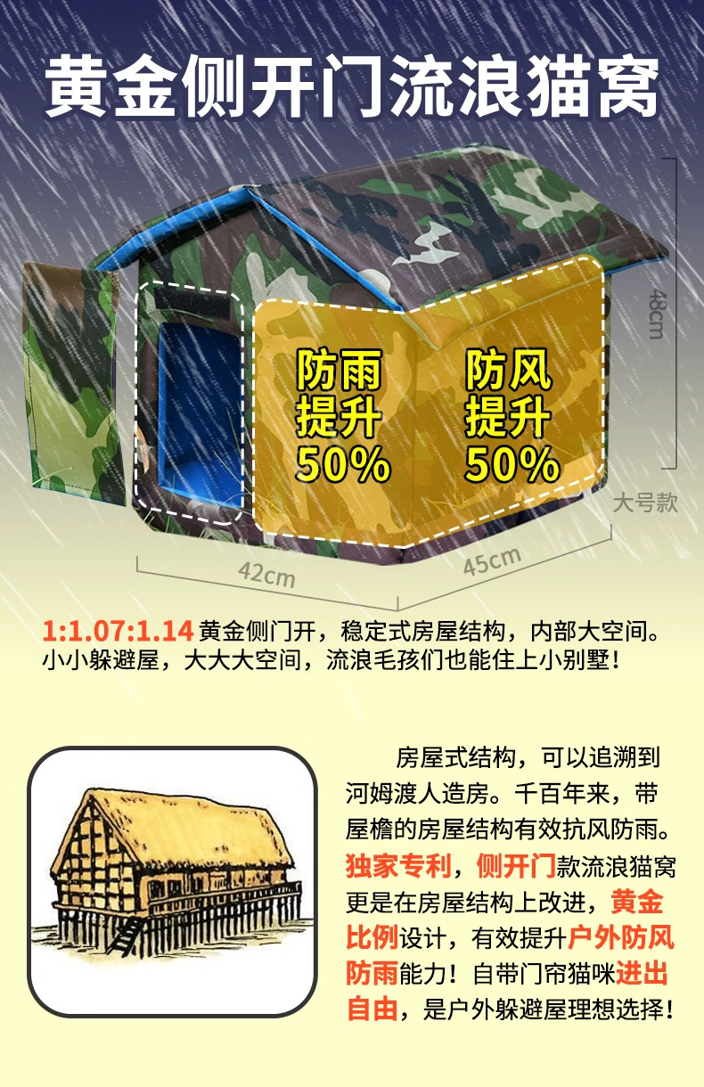 stray cat kennel 야외 고양이 개집 방수 및 방수 사계절 따뜻한 개 개집 야외 폐쇄형 야외 고양이 피난처 BY