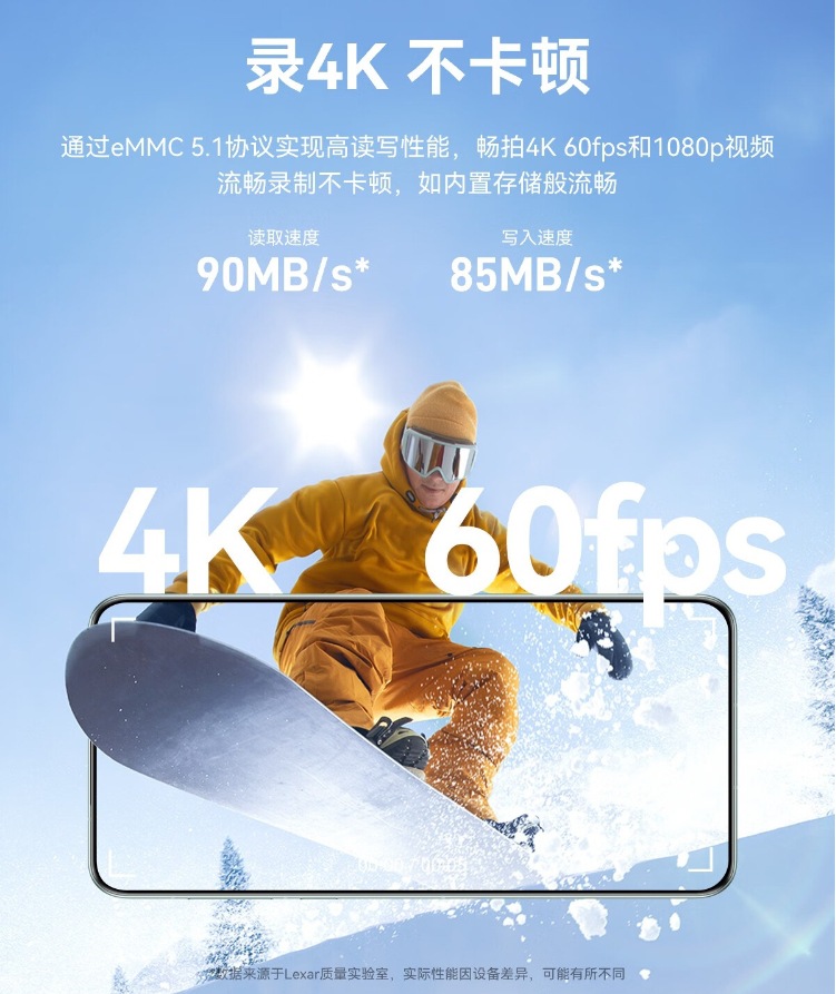 官方标注的速度为理想状态下速度数据,实际速度和使用环境有关(如设备配置不同、不同类型文件存储速度不同、读卡器、操作系统),所有的内存卡无法承诺保证实际速度值,我们可保证产品是原装正品!