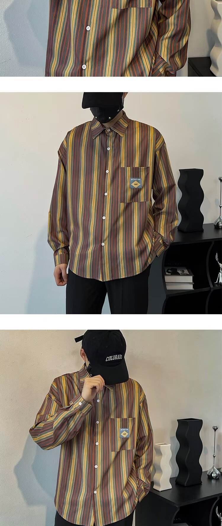 2024 편지 긴 소매 셔츠 일본 스타일 홍콩 스타일 Ins 느슨한 셔츠 소년 가을 트렌디 한 올 매치 캐주얼 자켓스토어 가기