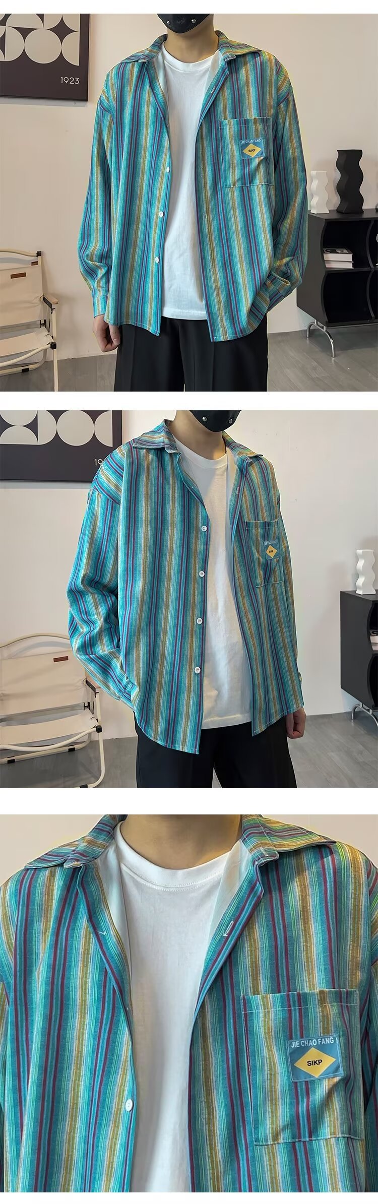 2024 편지 긴 소매 셔츠 일본 스타일 홍콩 스타일 Ins 느슨한 셔츠 소년 가을 트렌디 한 올 매치 캐주얼 자켓