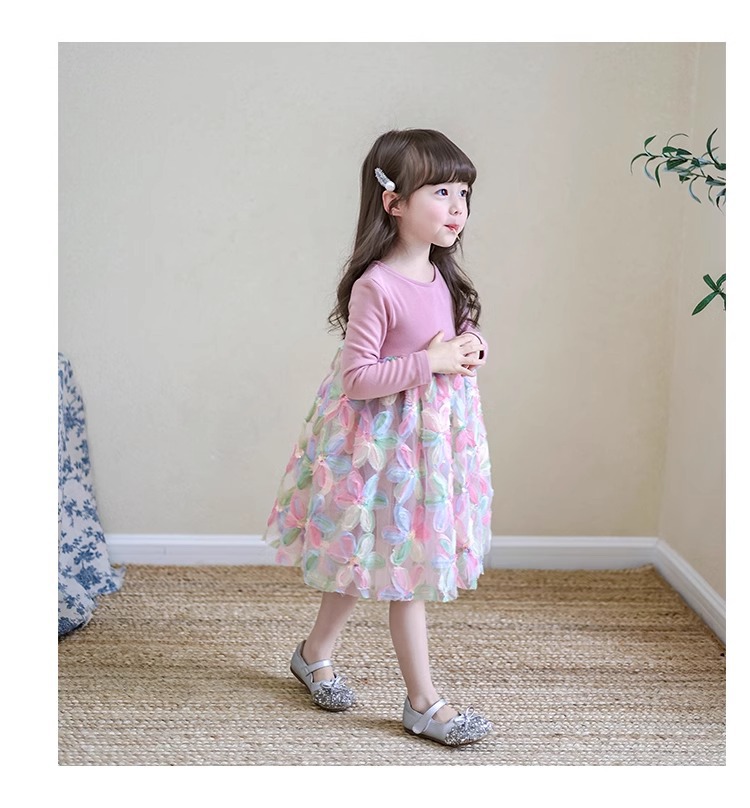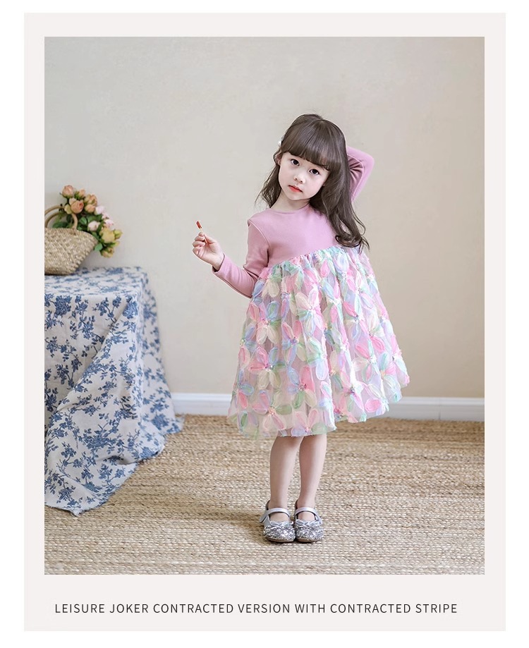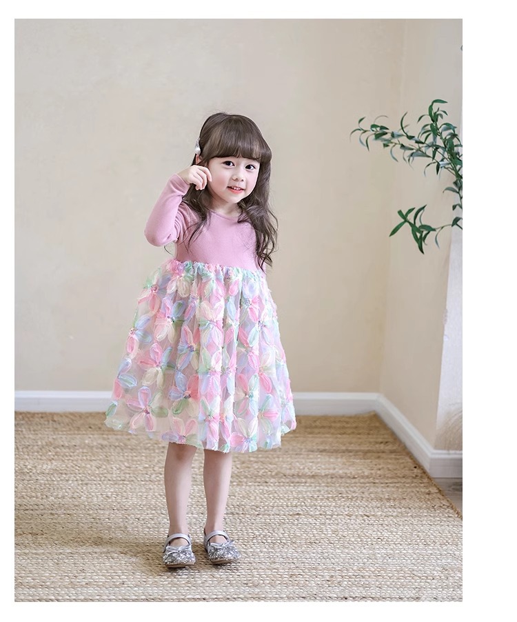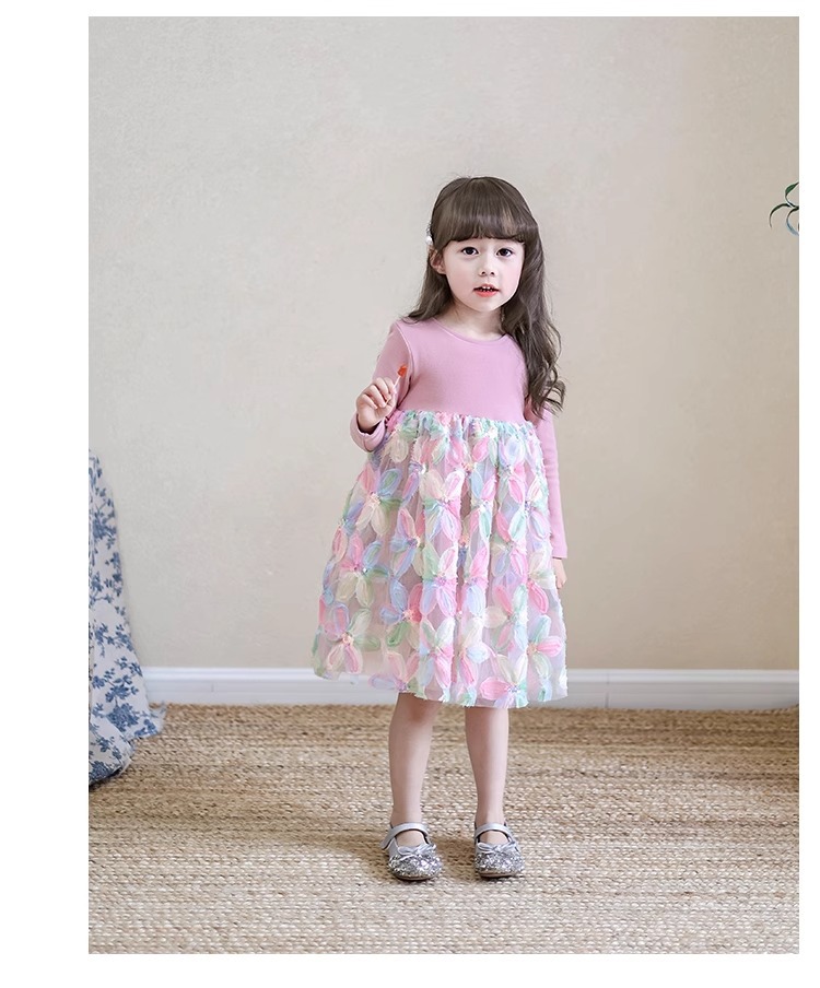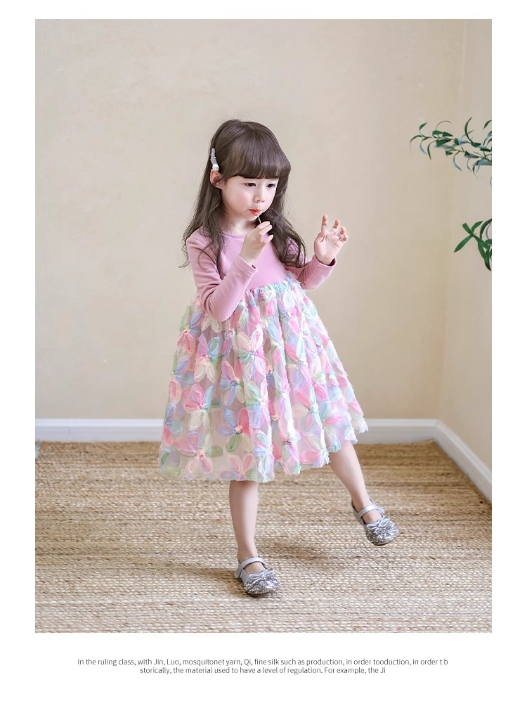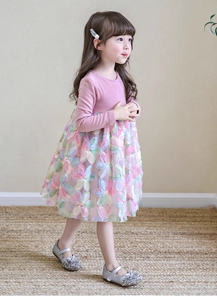 • 핑크 꽃봉오리 긴팔 망사 스커트 001 봄/가을 시즌