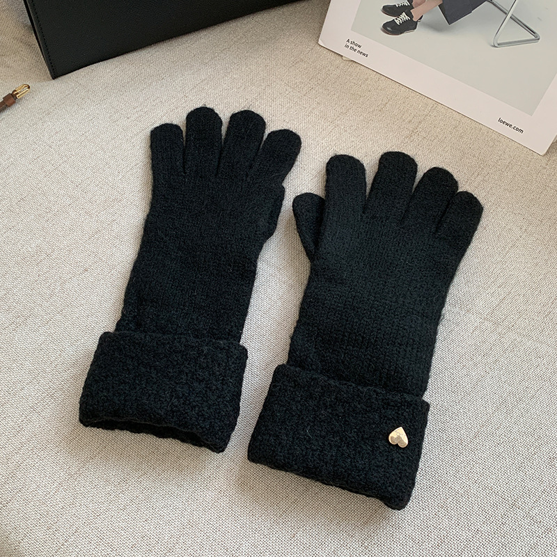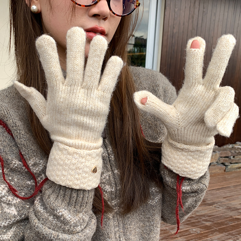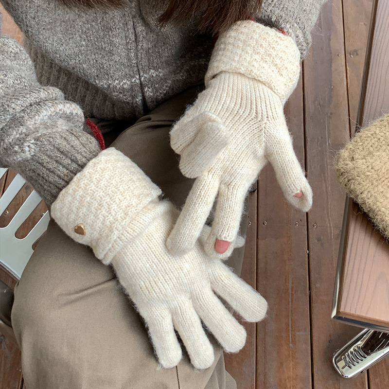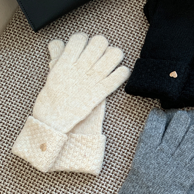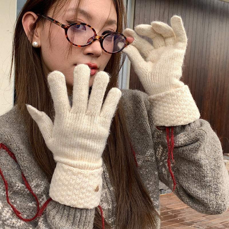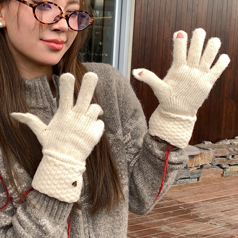따뜻한 봉제 장갑 가을과 겨울 5 손가락 니트 솔리드 컬러 콜드 리빙 장갑 샤넬 스타일 터치 스크린 울 승마 장갑