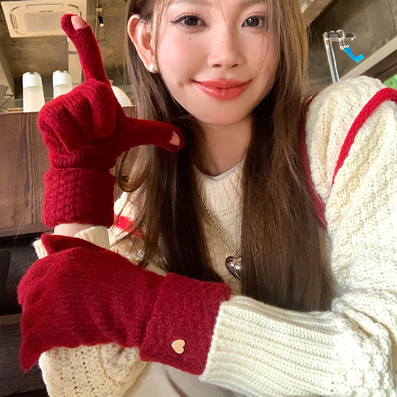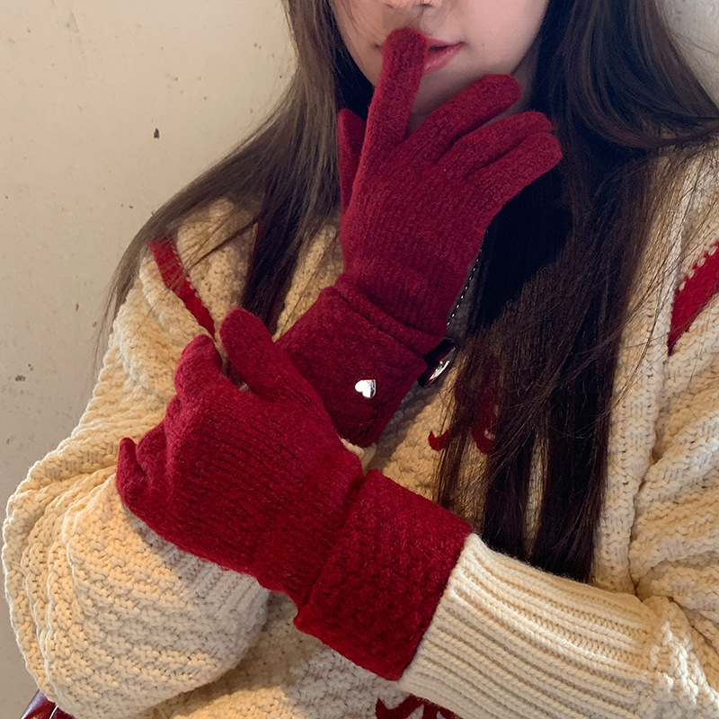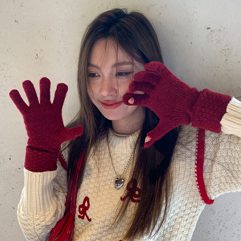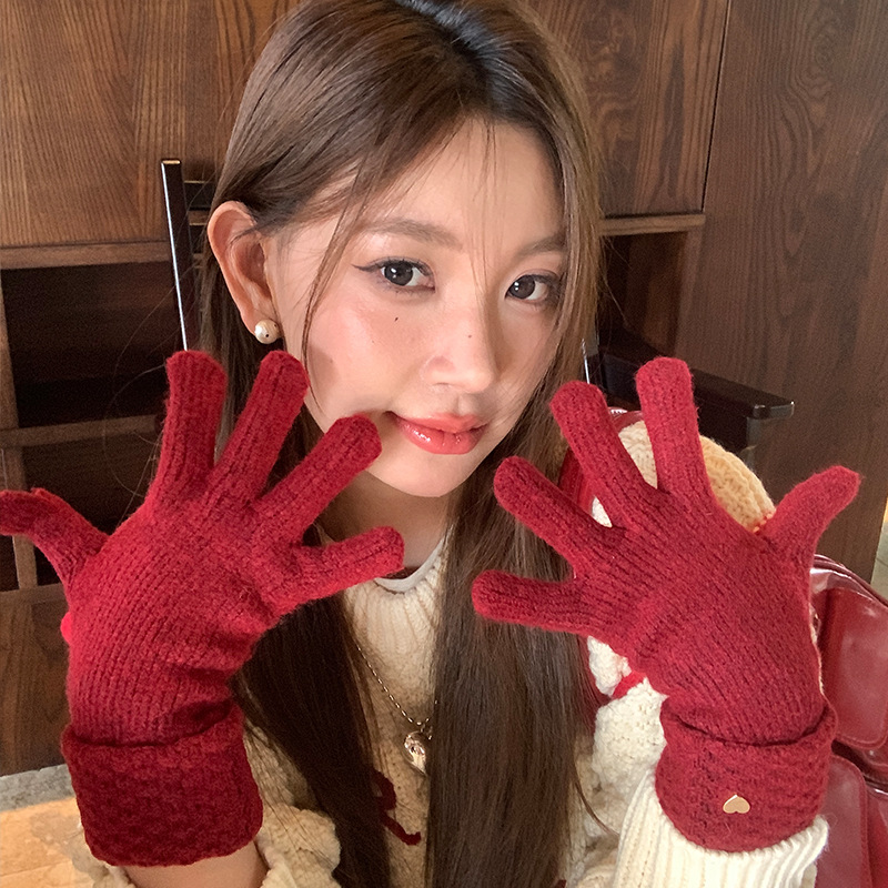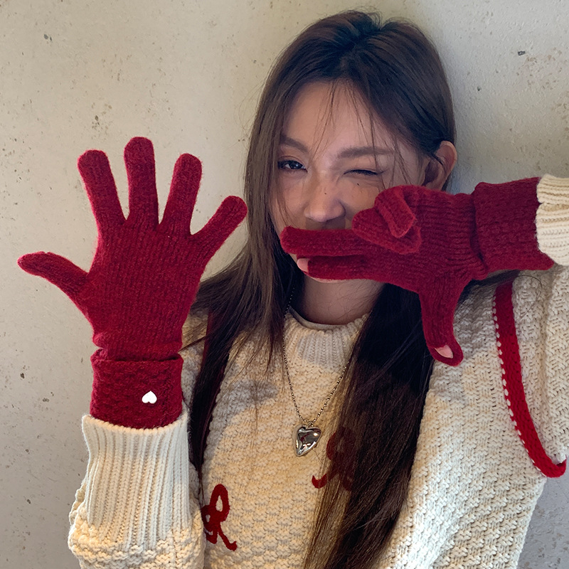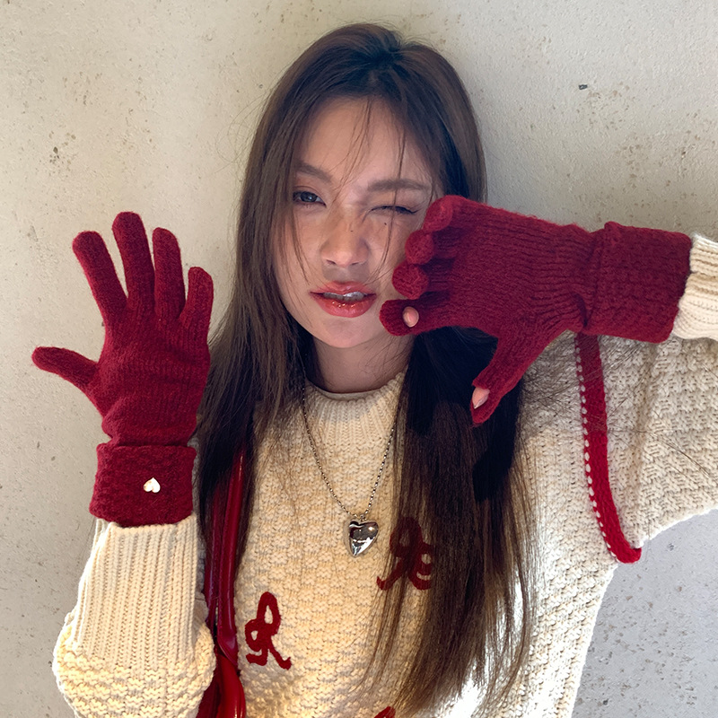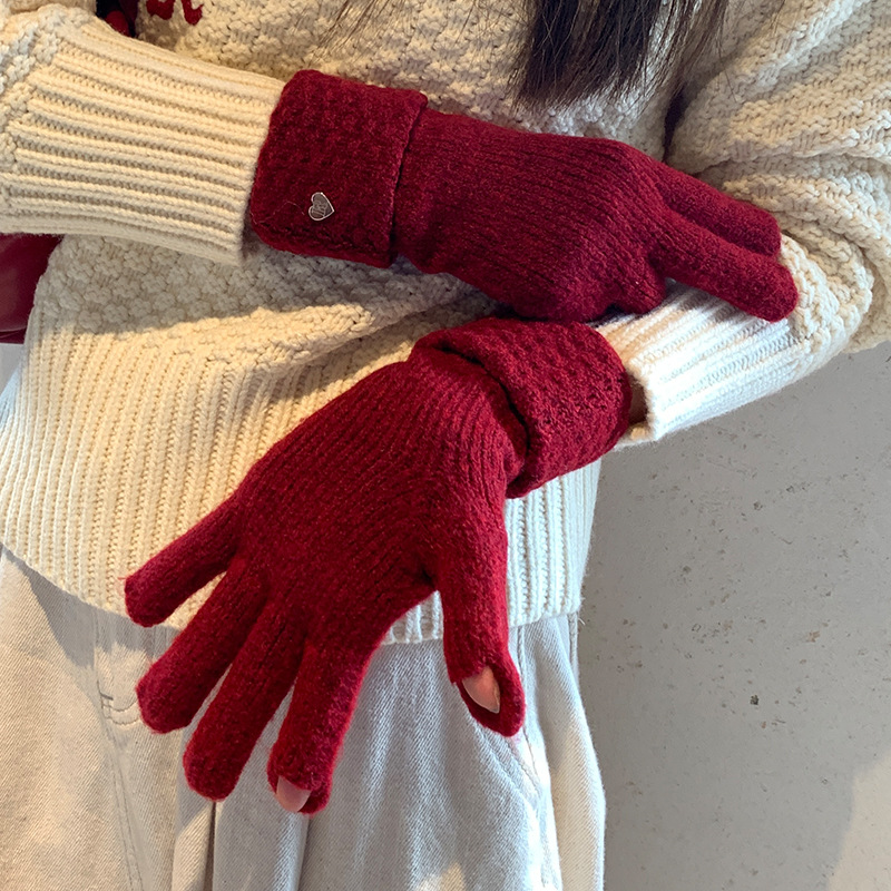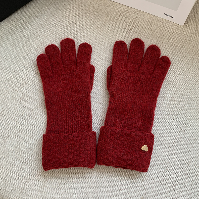 • 러브 라벨 옥수수 바늘 장갑-버건디