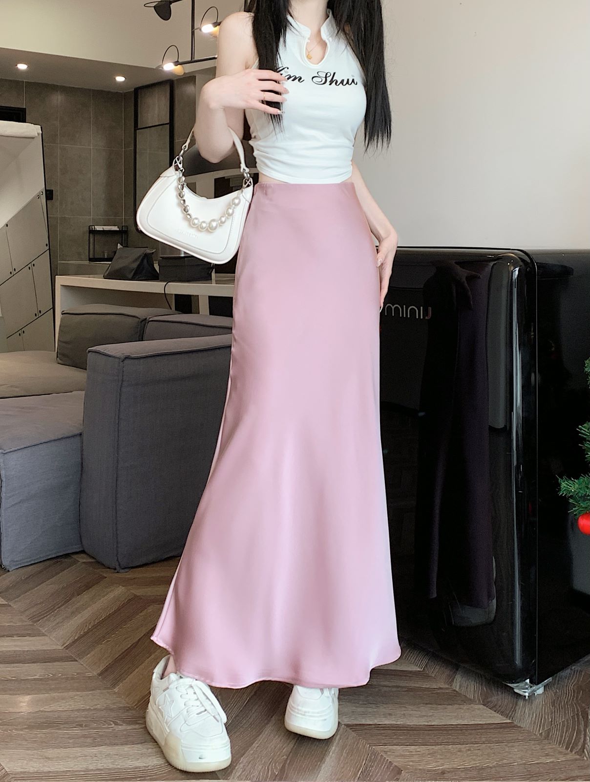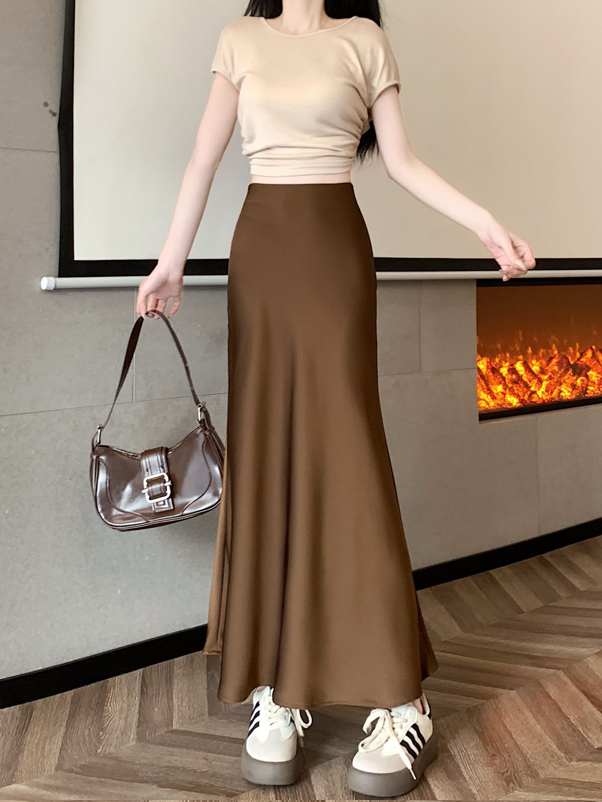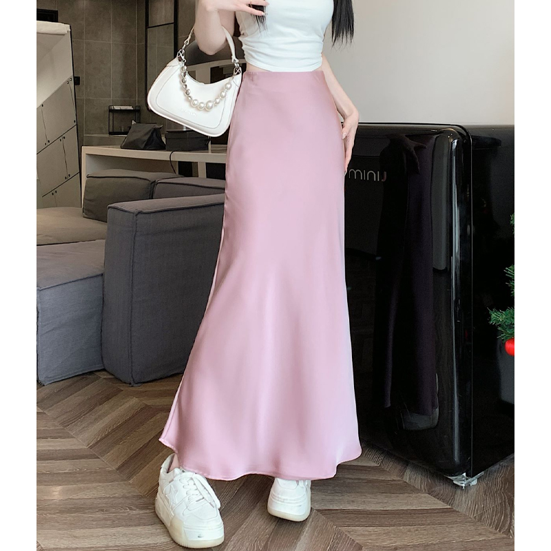 Acetic Acid Satin 스커트 여성의 가을 새로운 높은 허리 더미 피쉬 테일 스커트 롱 스커트스토어 가기