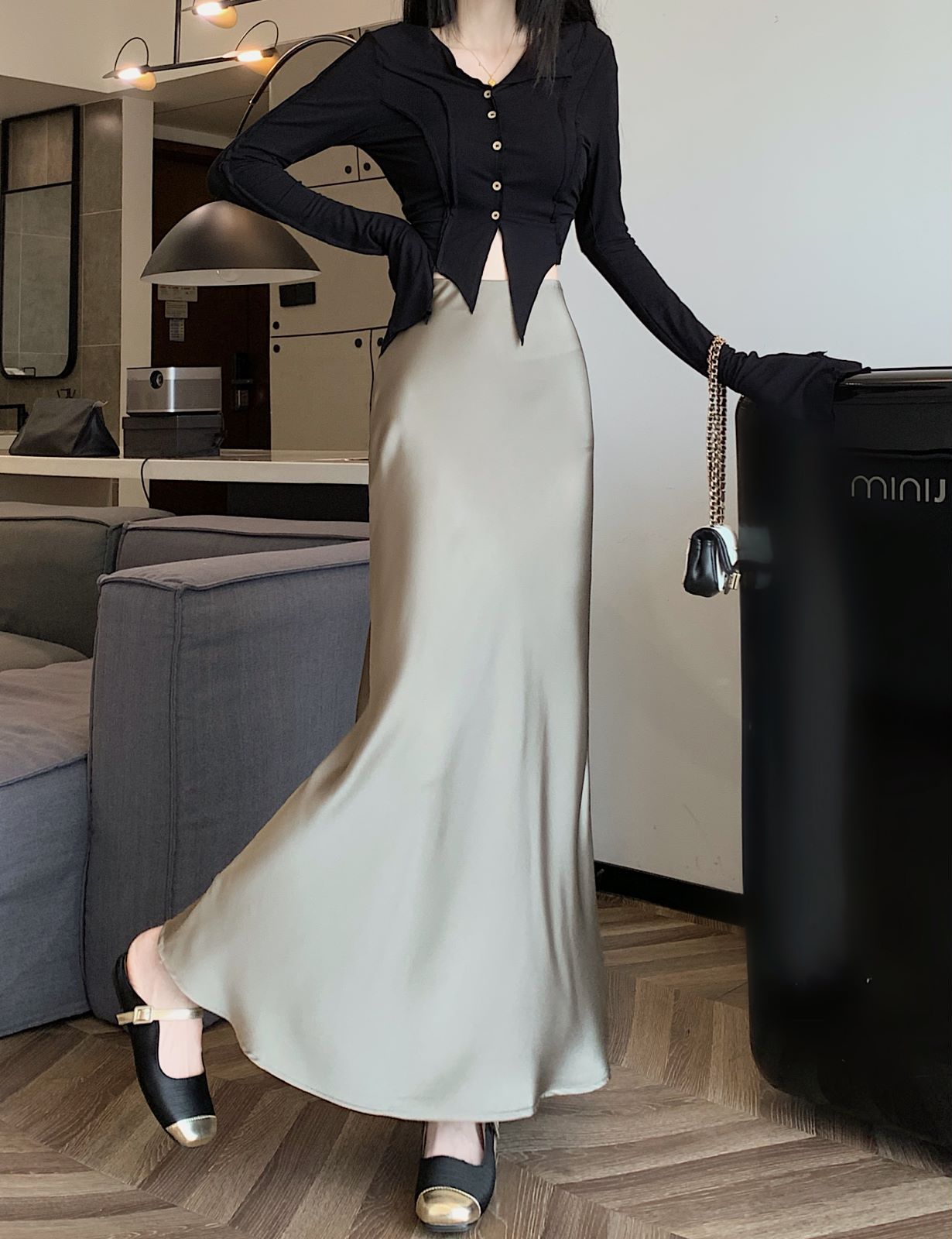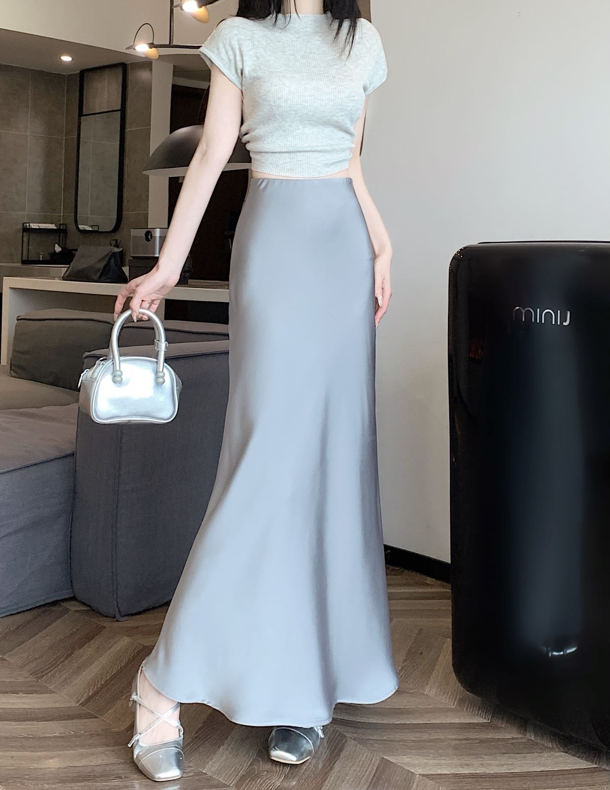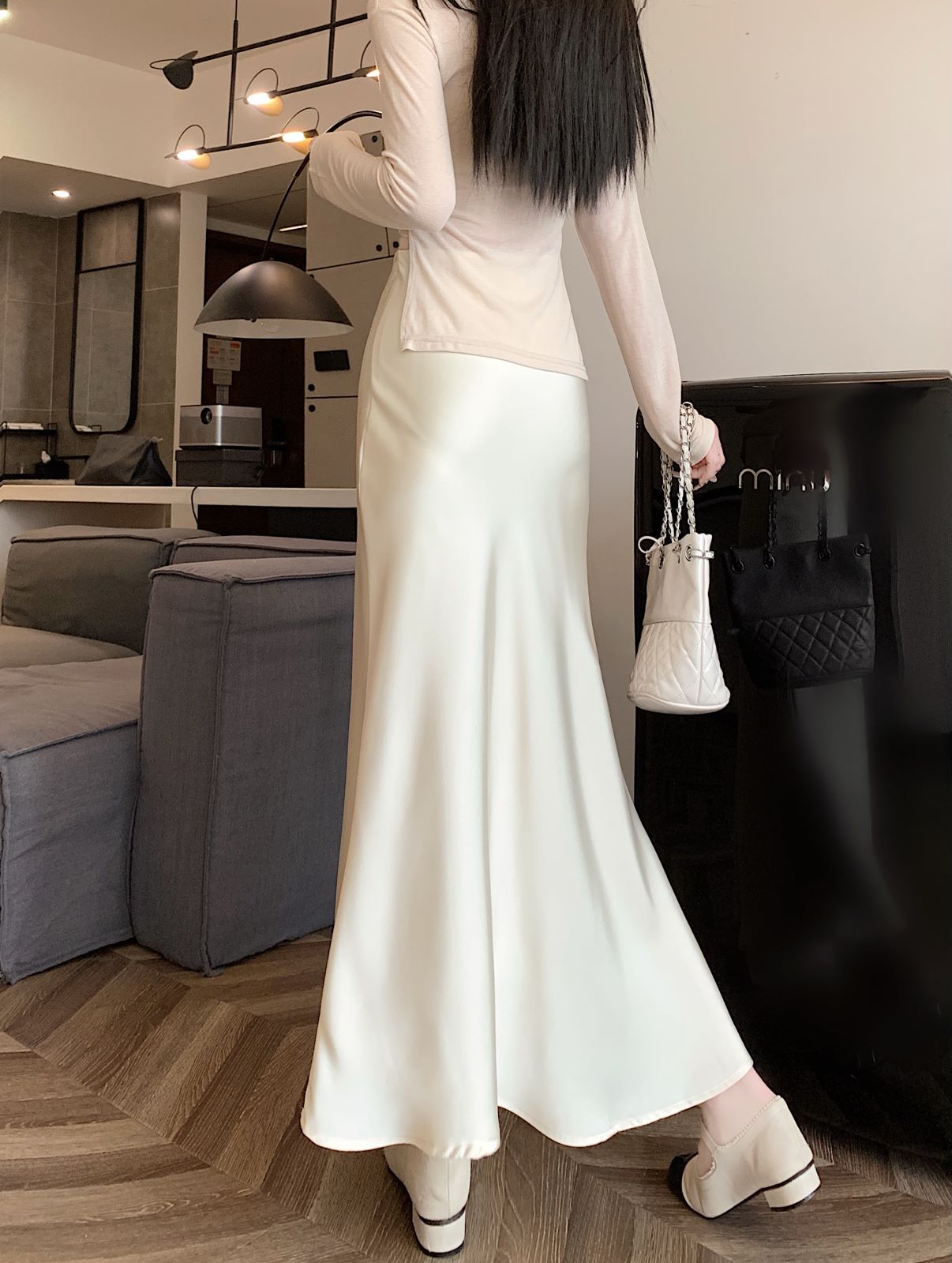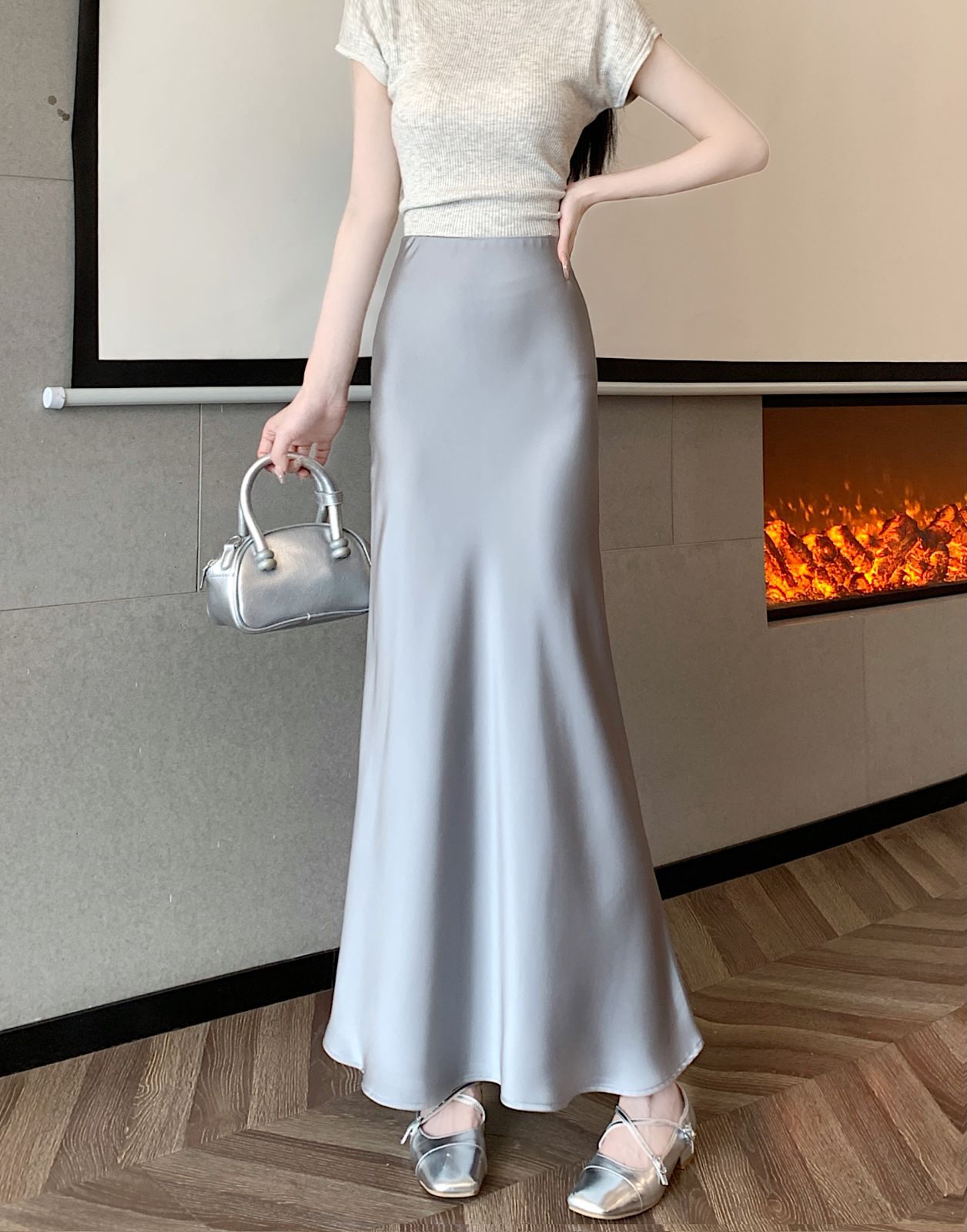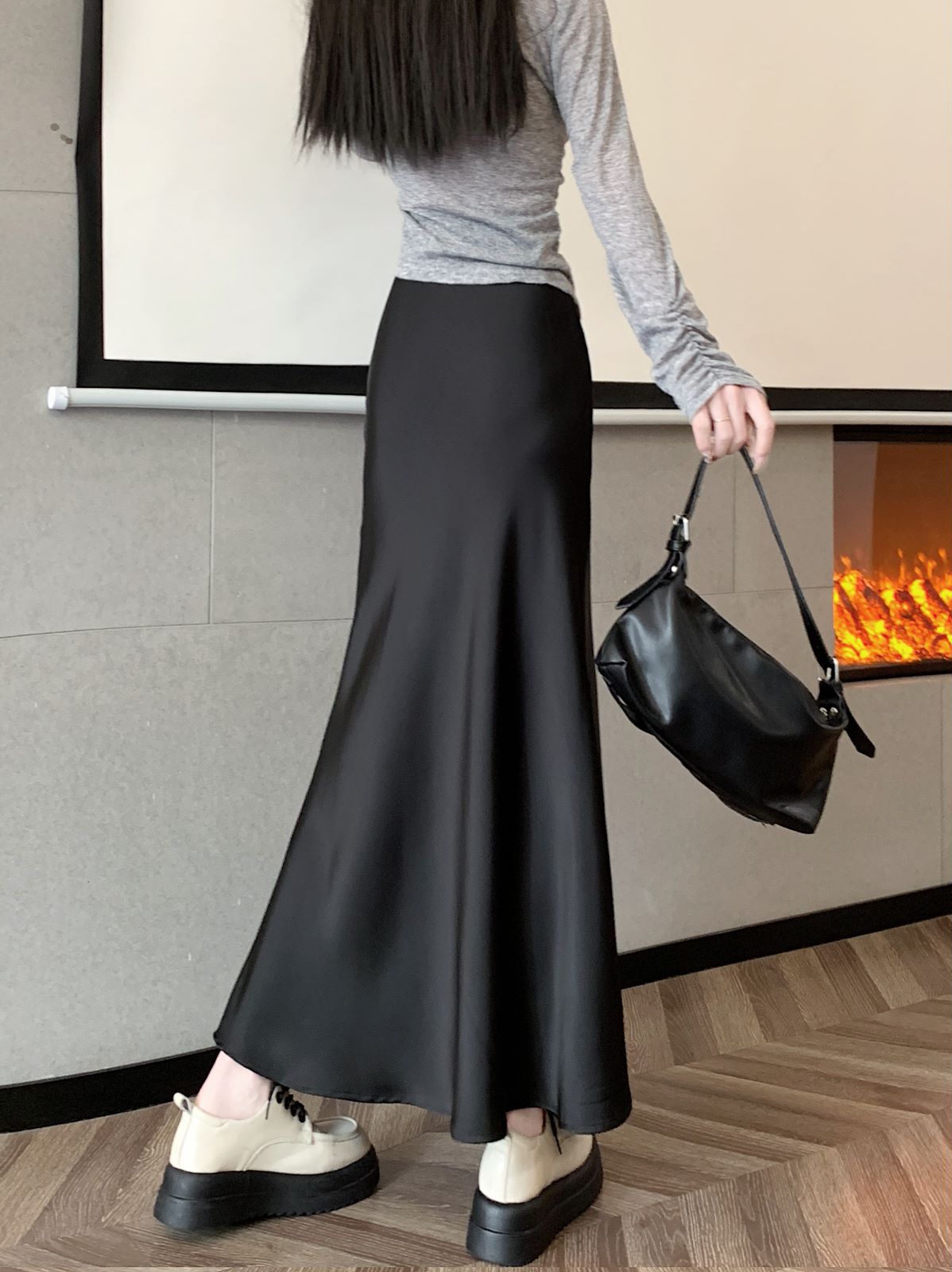 Acetic Acid Satin 스커트 여성의 가을 새로운 높은 허리 더미 피쉬 테일 스커트 롱 스커트