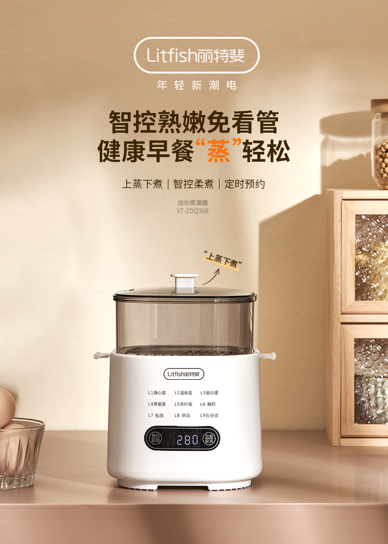Ritfi 계란 밥솥 계란 증기선 완전 자동 전원 끄기 가정용 작은 찐 계란 커스터드 아티팩트 아침 식사 요구르트 기계스토어 가기
