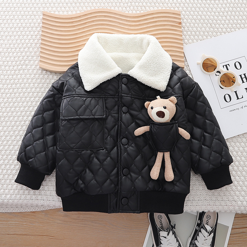 어린 소년 잘 생긴 기모 재킷 2024 가을과 겨울 새로운 어린이 입체 만화 곰 따뜻한 재킷 카디건 겨울 착용스토어 가기