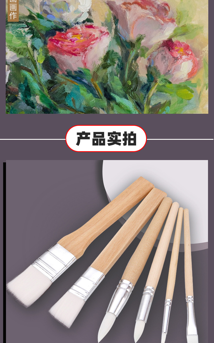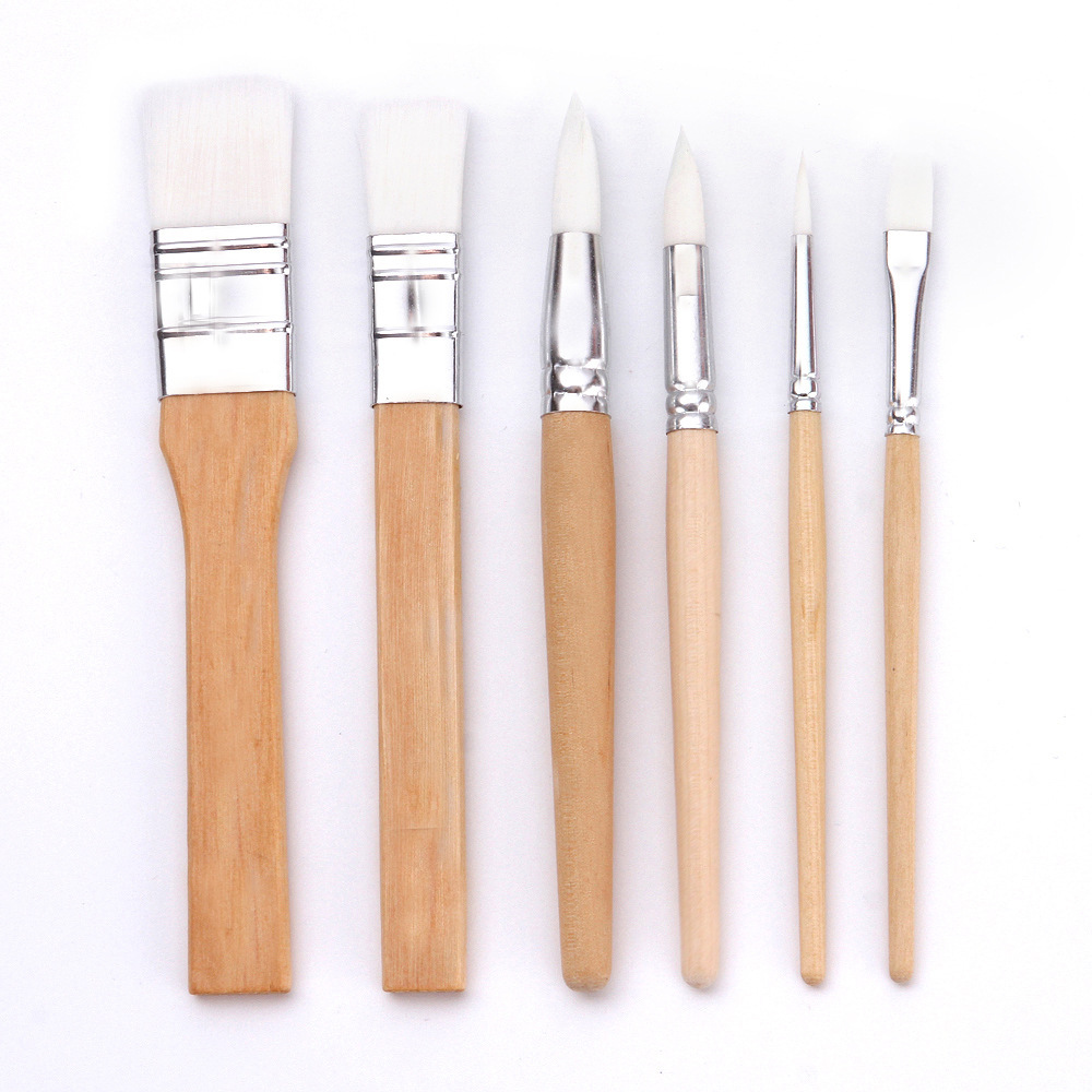 공장 직접 6 로그 폴 짧은 극 조합 브러시 세트 수채화 아크릴 페인트 페인트 페인트 브러시 크로스 테두리