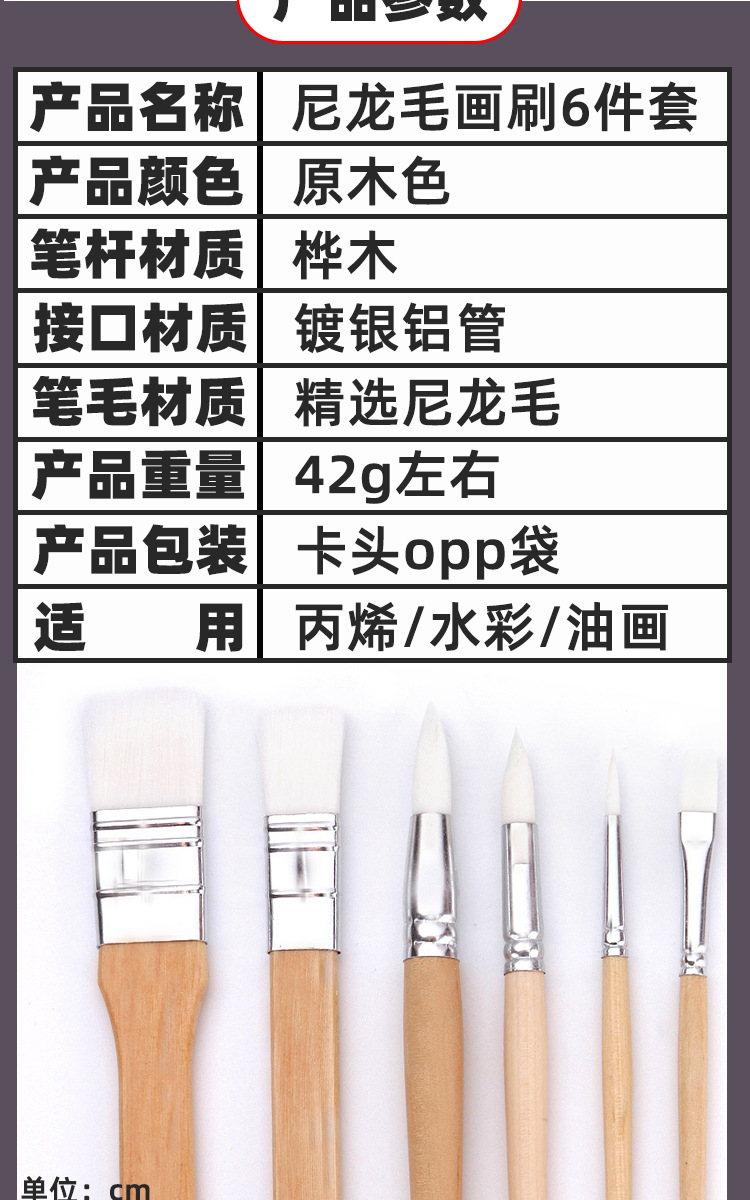 공장 직접 6 로그 폴 짧은 극 조합 브러시 세트 수채화 아크릴 페인트 페인트 페인트 브러시 크로스 테두리스토어 가기
