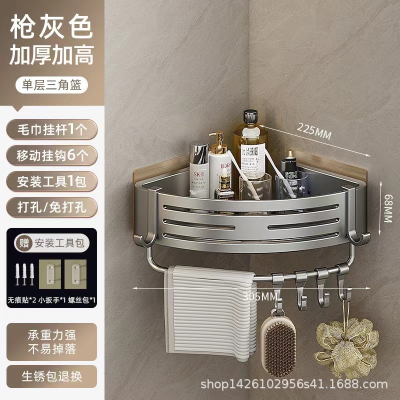 욕실 삼각형 랙 펀치 프리 화장실 세탁기 벽 저장 랙 공간 알루미늄스토어 가기