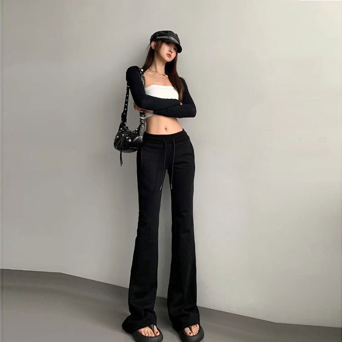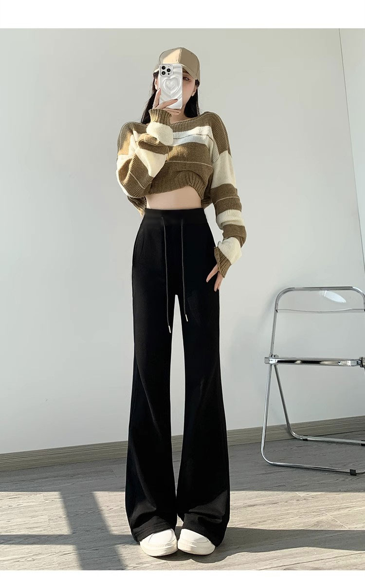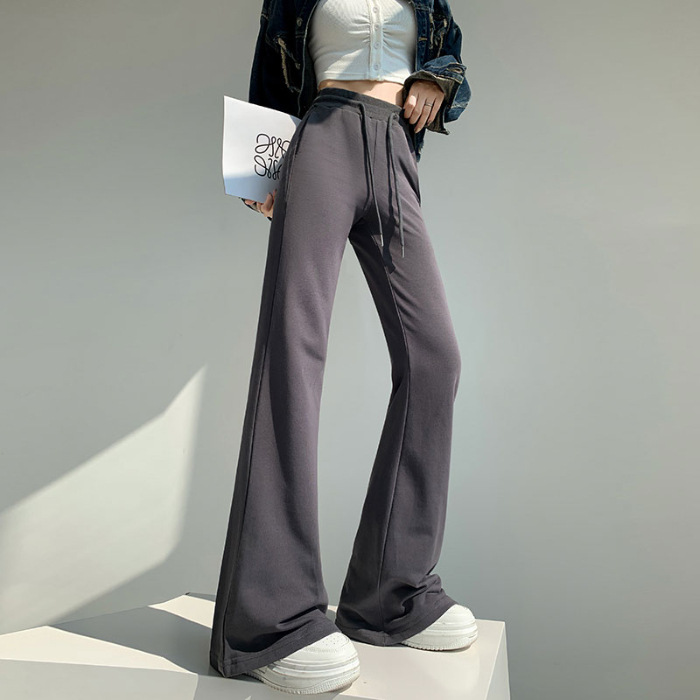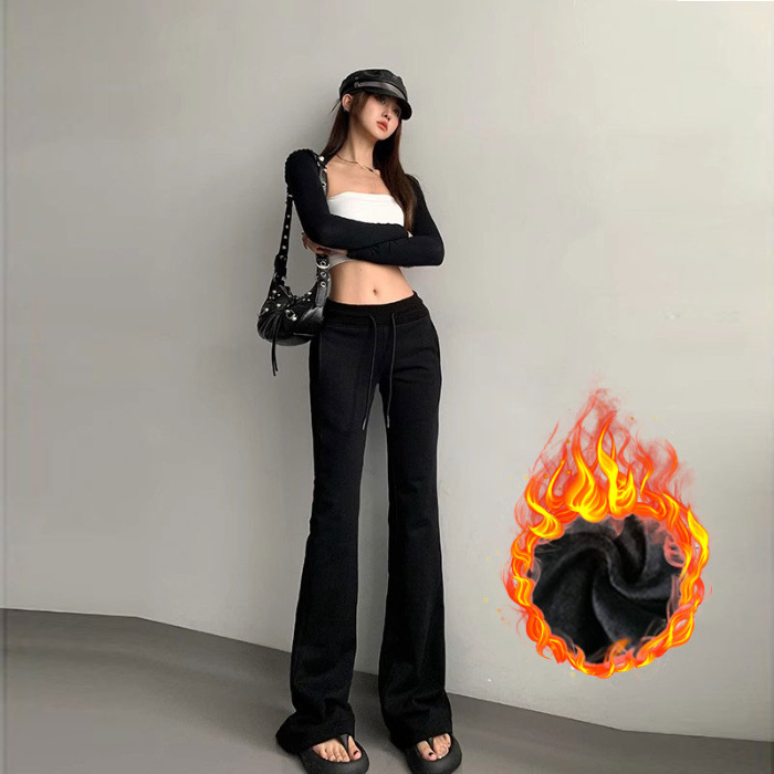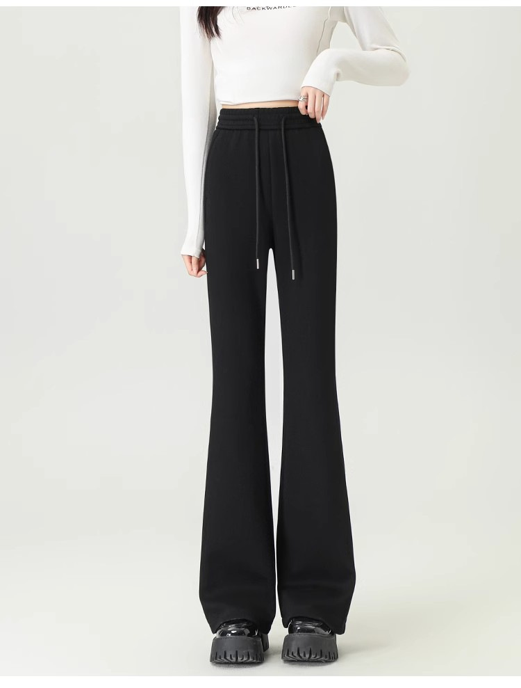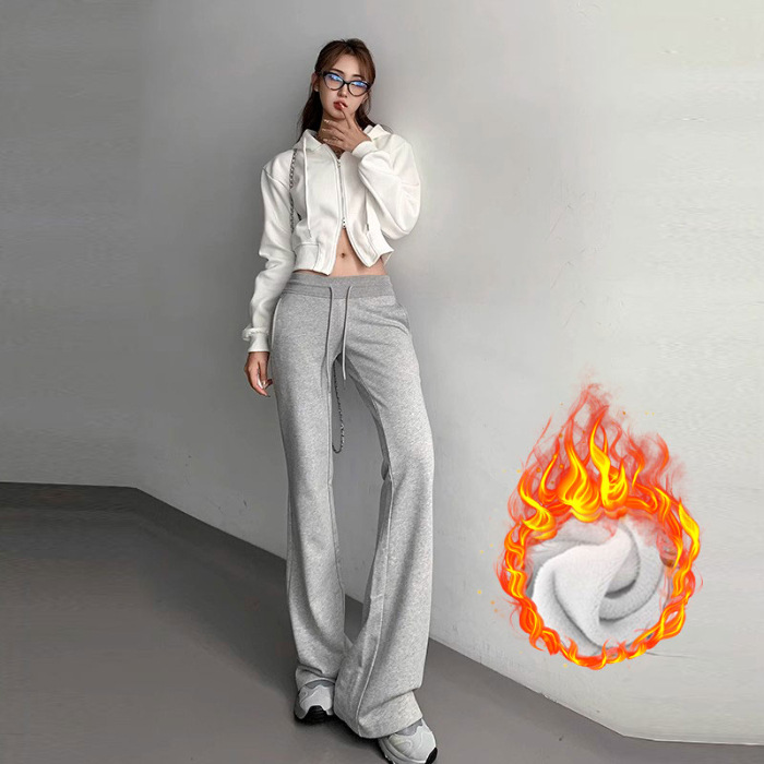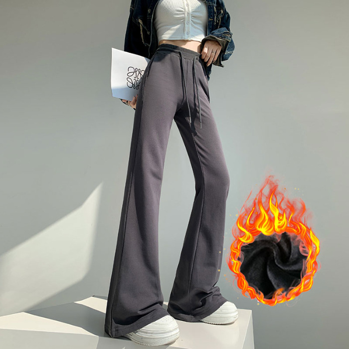 재닌 그레이 요가 바지 여성 기모 두꺼운 높은 허리 슬림 플레어 바지 캐주얼 아메리칸 스타일 말굽 스웨덴 바지
