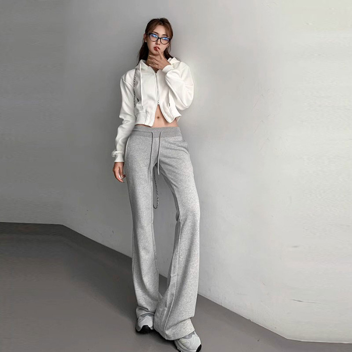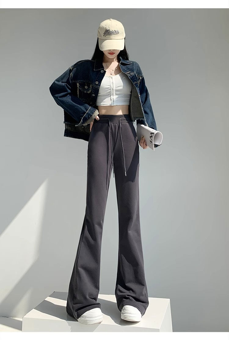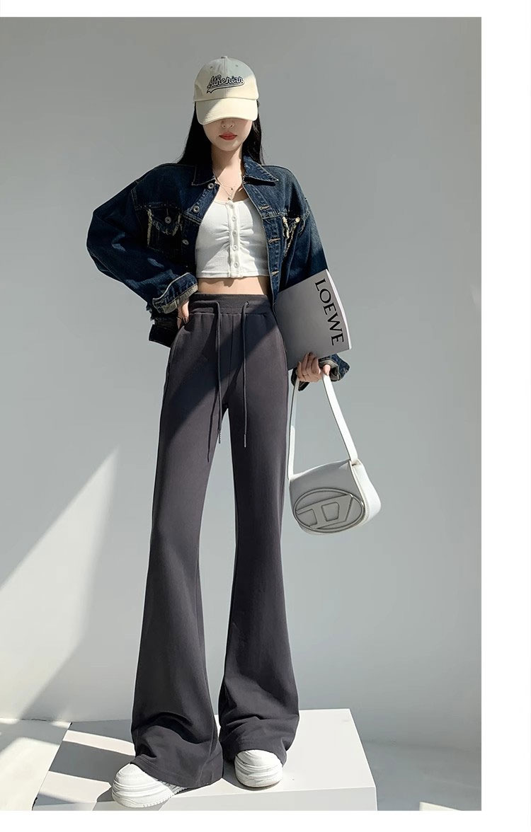 재닌 그레이 요가 바지 여성 기모 두꺼운 높은 허리 슬림 플레어 바지 캐주얼 아메리칸 스타일 말굽 스웨덴 바지스토어 가기