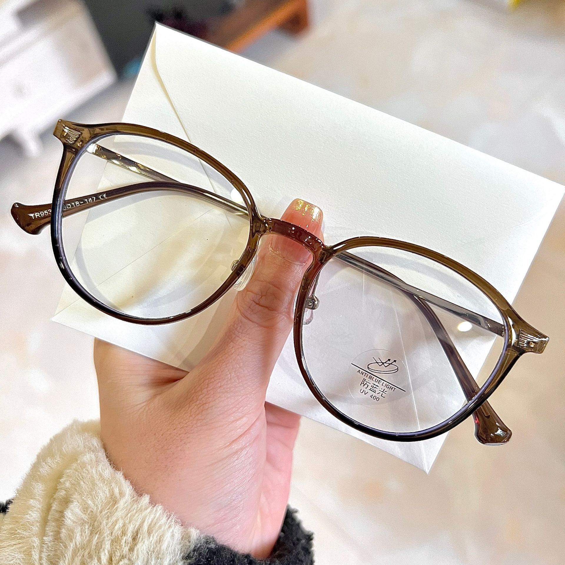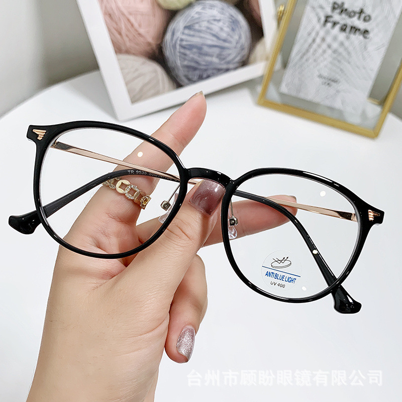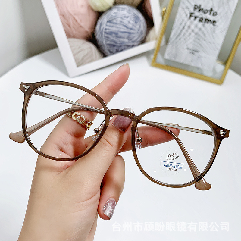 새로운 콜드 티 컬러 안경 프레임 여성 한국 스타일 일반 안티 블루 라이트 플랫 안경 근시 안경 울트라 라이트 안경 프레임