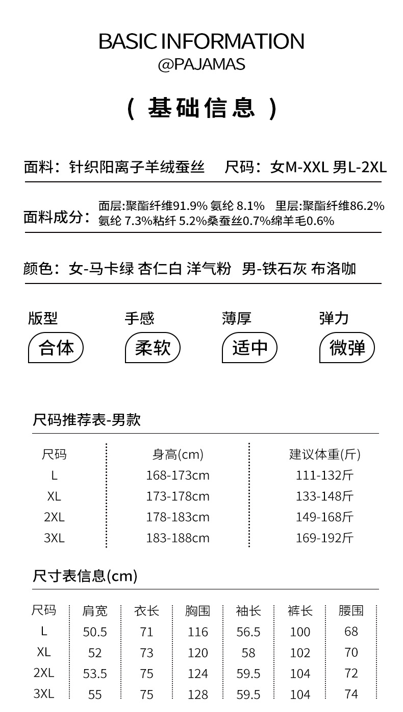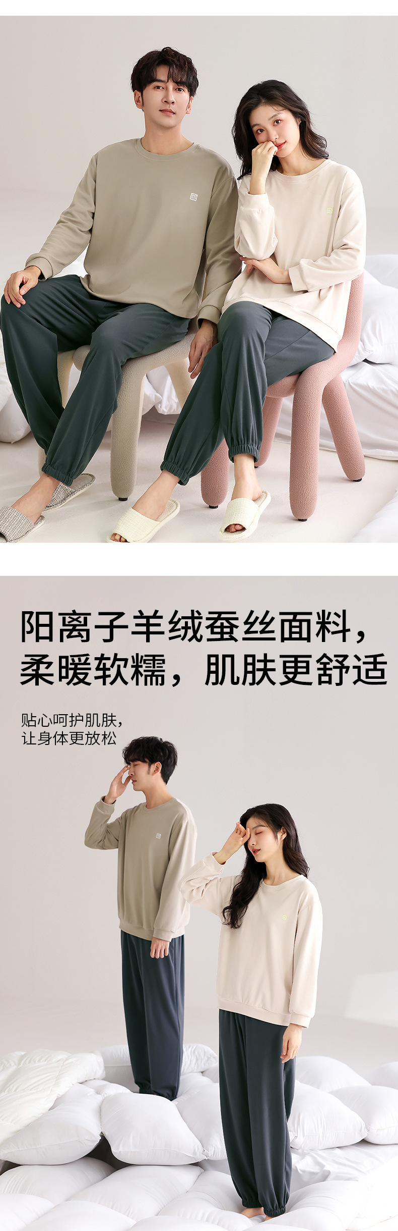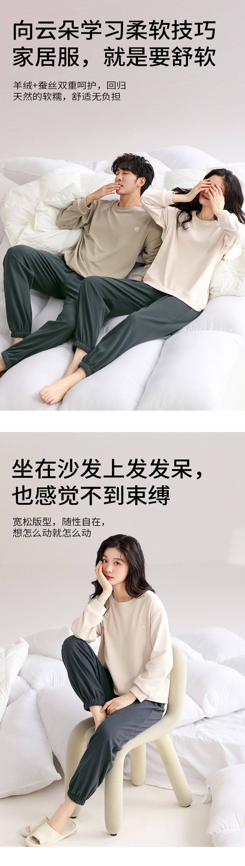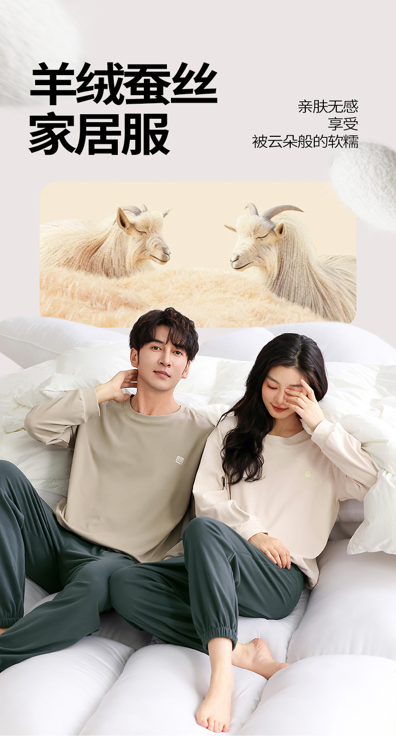 【캐시미어 실크】가을 겨울 신상 긴팔 커플 잠옷 여성용 편안한 신축성 있는 홈웨어 세트 투피스