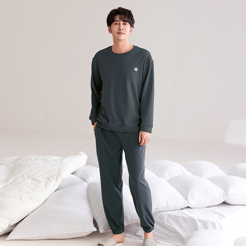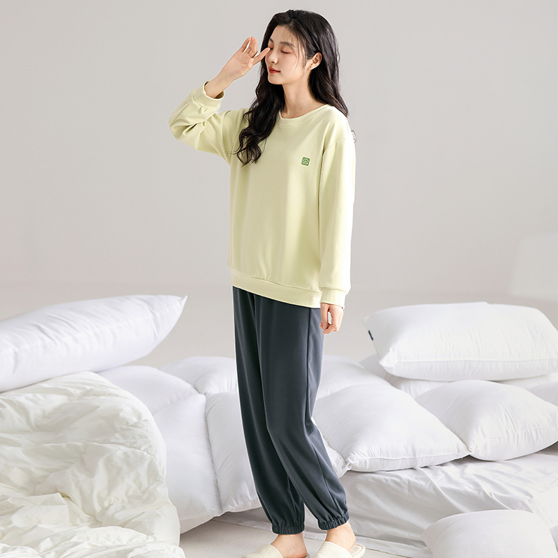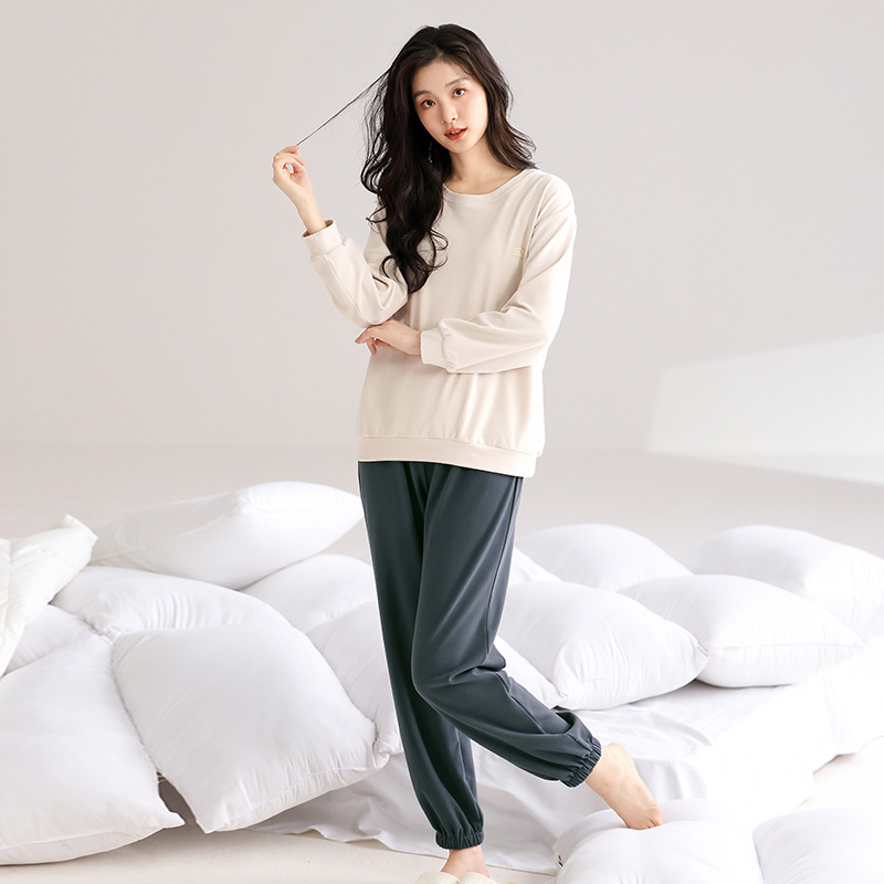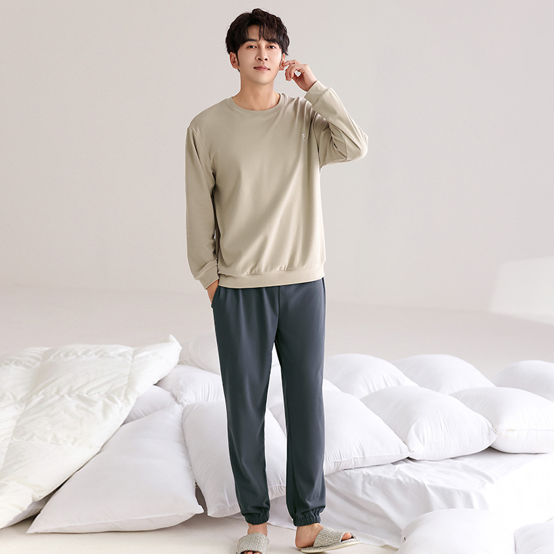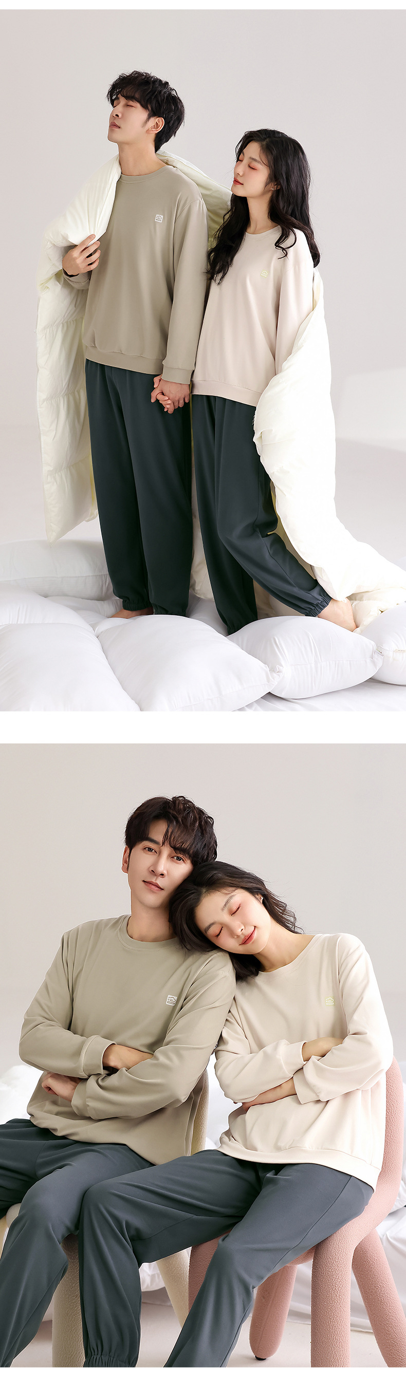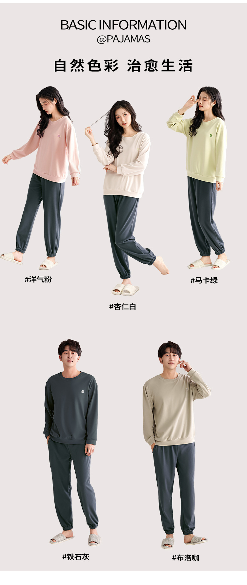【캐시미어 실크】가을 겨울 신상 긴팔 커플 잠옷 여성용 편안한 신축성 있는 홈웨어 세트 투피스